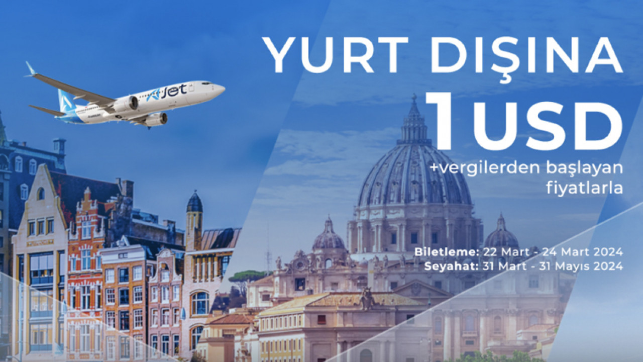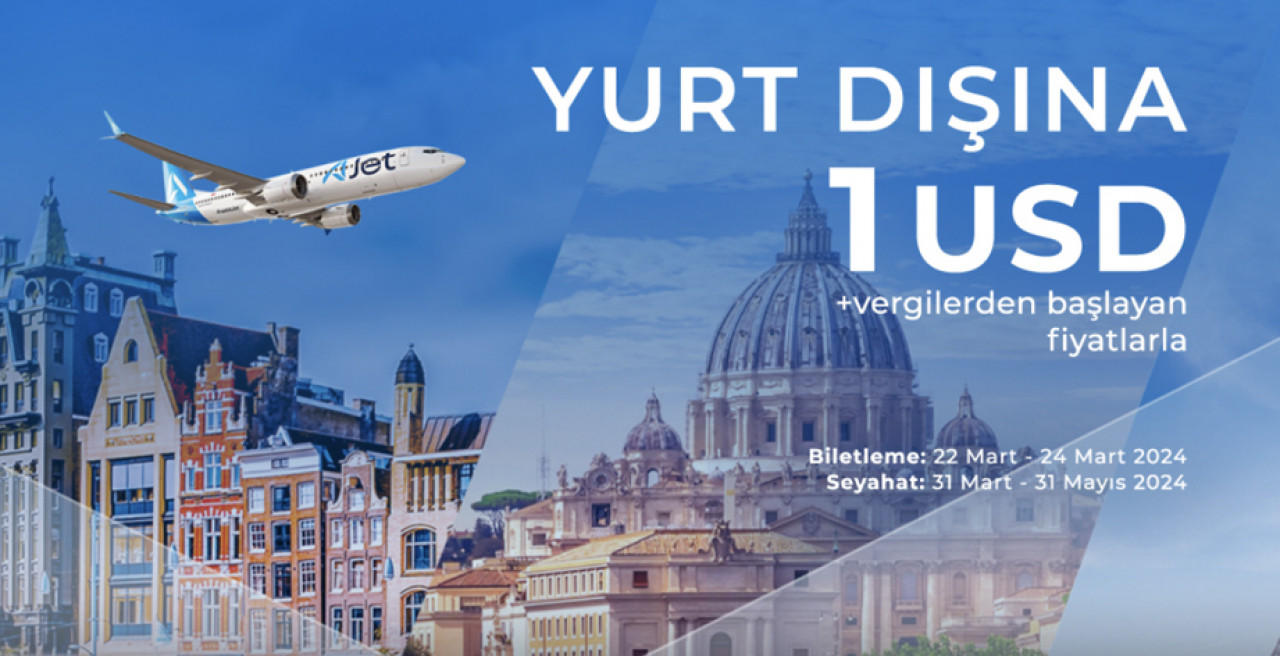 AJet’in Türkiye’den yurt dışına uçuşlarda 1 USD + vergilerden başlayan, yurt dışından Türkiye’ye uçuşlarda 1 EUR + vergilerden başlayan avantajlı fiyatlarıyla biletinizi hemen alın, birbirinden güzel şehirlerde unutulmaz anılar biriktireceğiniz bir seyahate hazır olun.