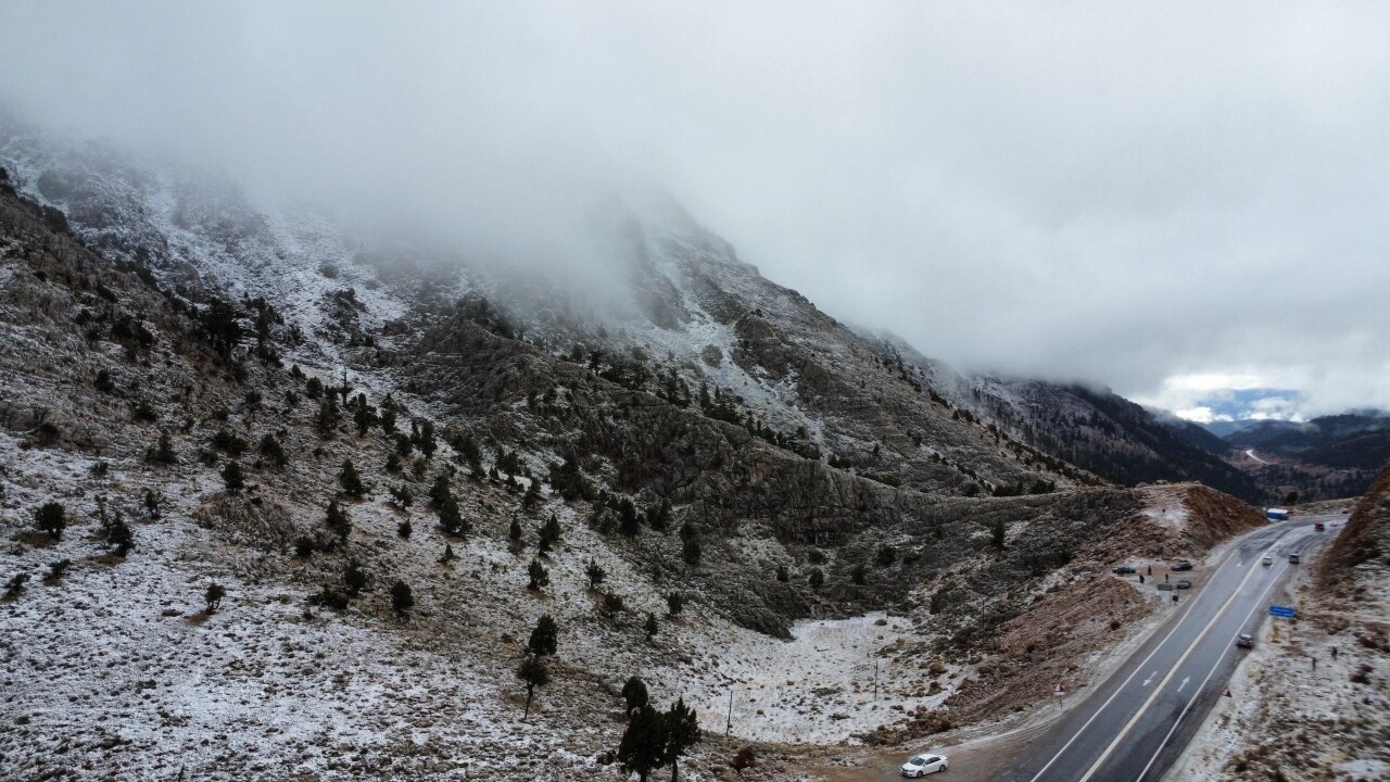 Akseki-Seydişehir kara yolundaki Alacabel'de kar yağışı etkili oldu.