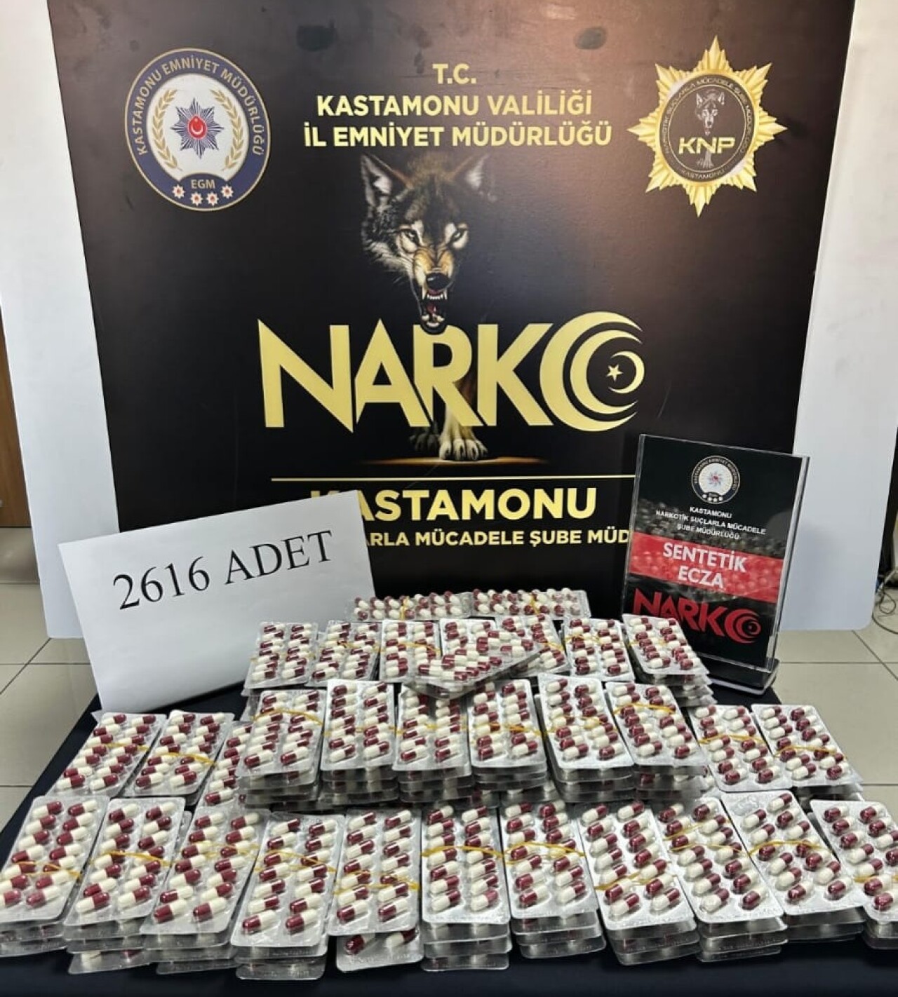 Bu kapsamda tespit edilen E.S'nin üzerinde ve aracında yapılan aramada, 2 bin 616 uyuşturucu hap ele geçirildi.