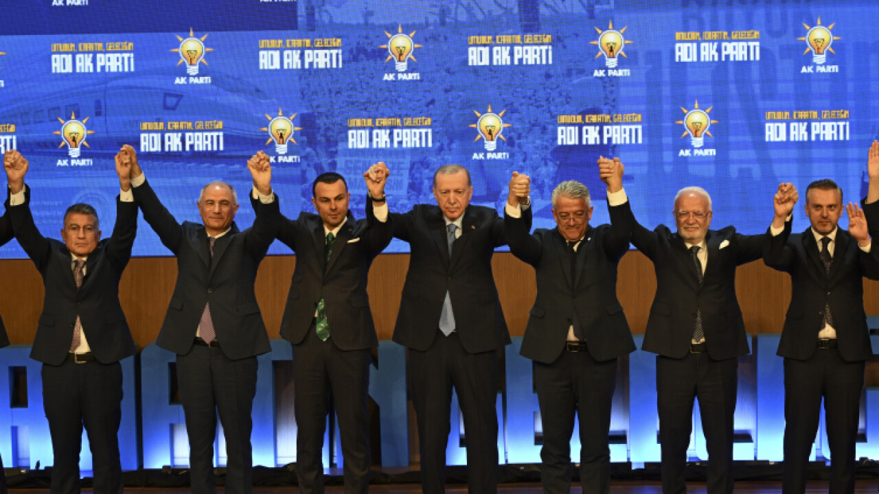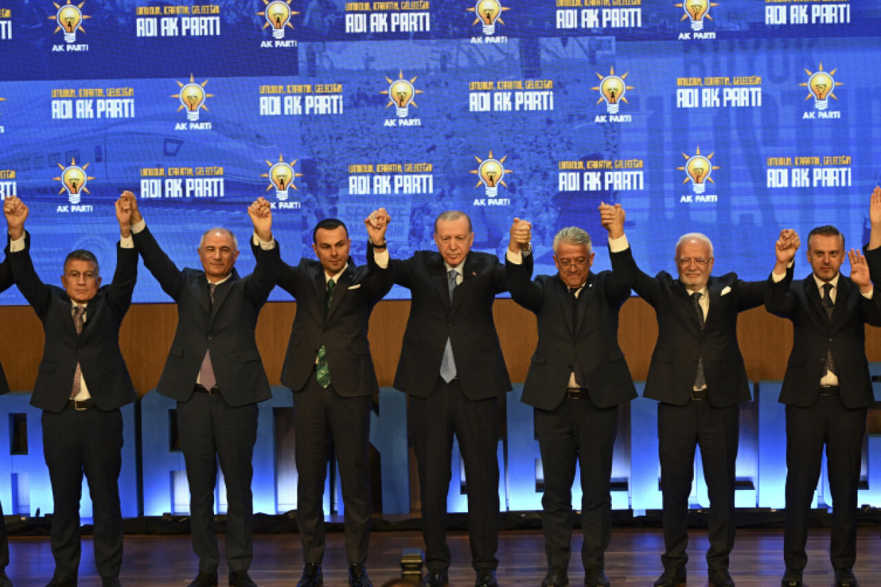 Cumhurbaşkanı Erdoğan'ın konuşması sonrası 13 belediye başkanı AK Parti'ye katıldı. AK Parti'ye katılan başkanlara rozetleri takılıyor.