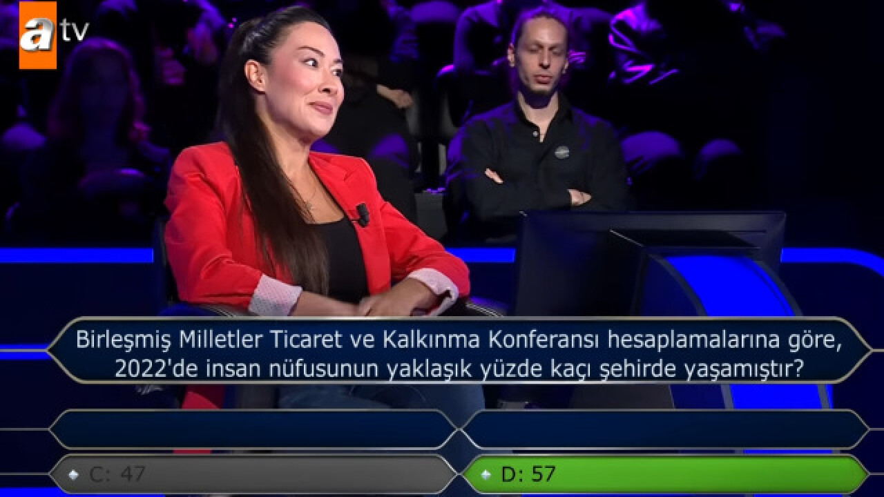 Kim Milyoner Olmak İster'de sorulan "2022'de insan nüfusunun yaklaşık yüzde kaçı şehirde yaşamıştır?" sorusu gündeme damga vurdu. İşte doğru cevap ve detaylı bilgiler.