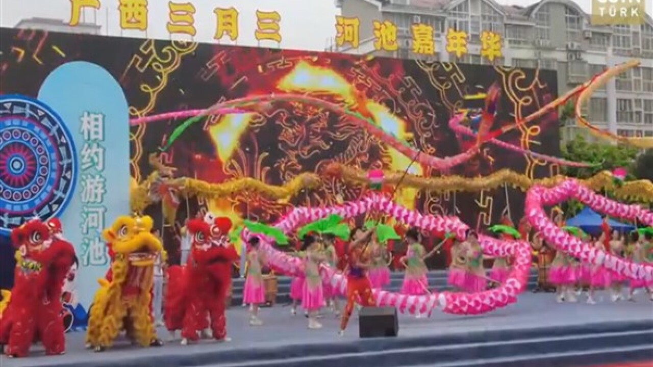 Guangxi Zhuang Özerk Bölgesi'nde en kalabalık nüfusa sahip olan Zhuang'lar ve farklı etnik gruplar 3 Mart Bayramı'nı coşkuyla kutladılar.
