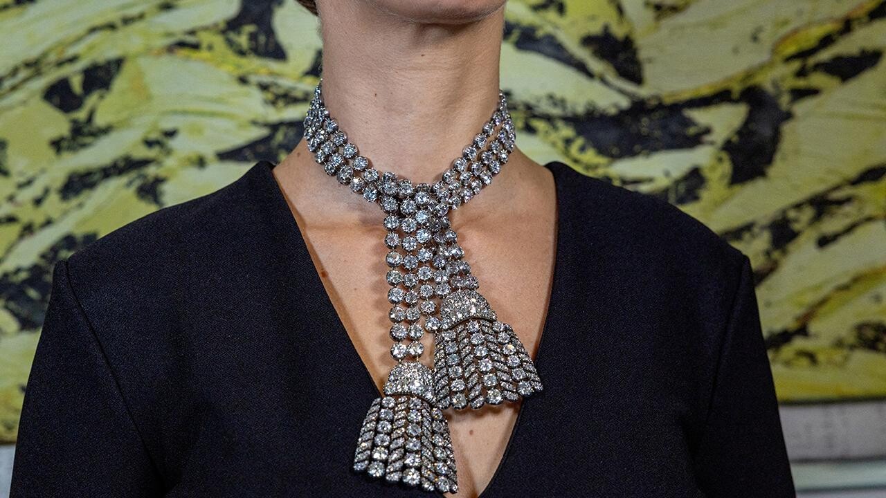 Sotheby’s, üç sıra elmasın uçlarında püsküllerle tamamlandığı bu kolyenin, yarım yüzyıldır bir Asya koleksiyonunda saklı kaldığını ve nadir bir parça olarak bugünkü müzayedede ilk kez sergilendiğini belirtti.