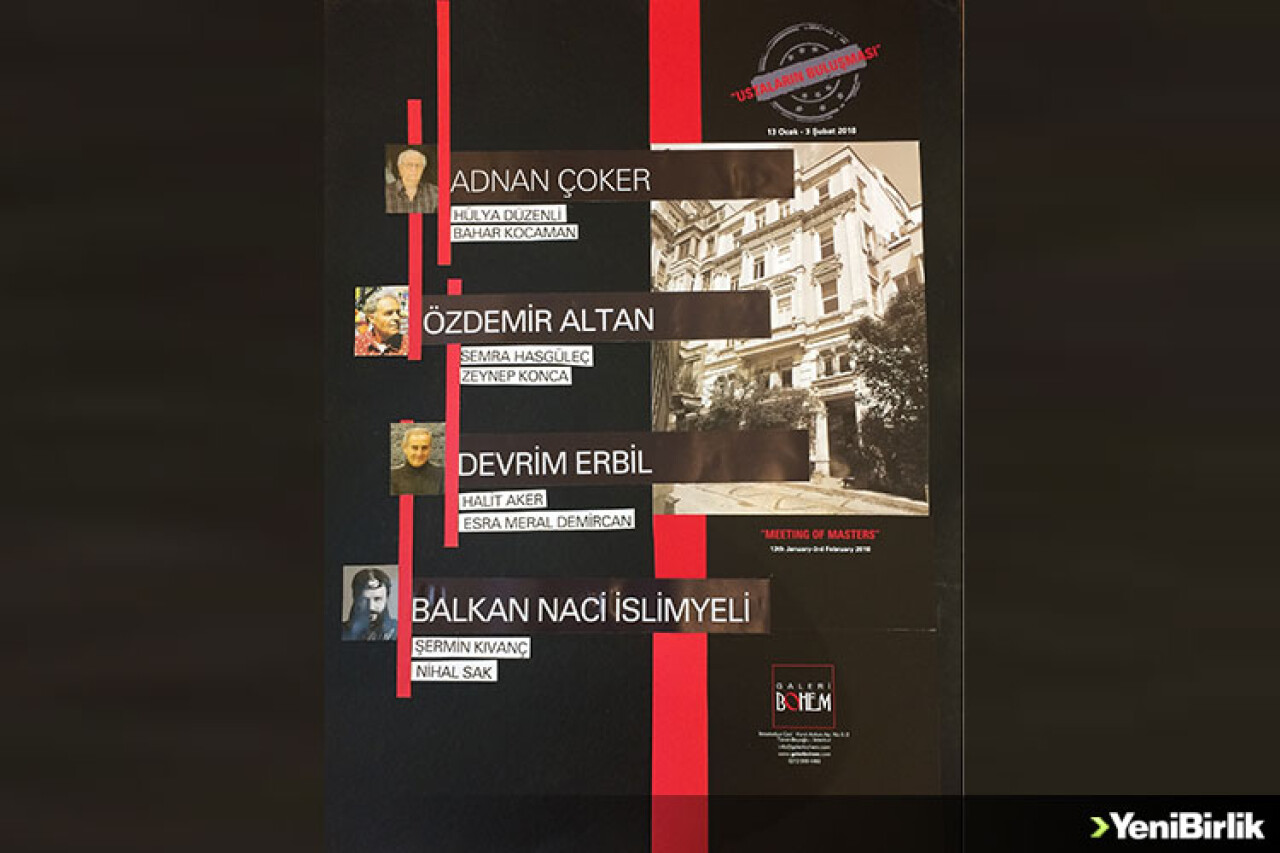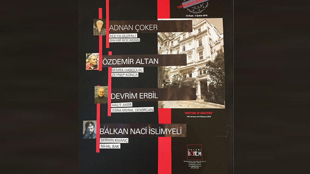Yakın zamanda Beyoğlu Tünel’e taşınan Galeri Bohem, yeni mekanındaki ilk sergisinde dört efsane sanatçıyı; Adnan Çoker, Özdemir Altan, Balkan Naci İslimyeli ve Devrim Erbil’i ağırlıyor. Türk resminin son 50 yılının panoraması niteliğini taşıyan “Ustaların Buluşması” adlı sergide usta isimlerin yanı sıra sanatçı kimlikleriyle öne çıkan öğrencileri; Hülya Düzenli, Bahar Kocaman, Semra Hasgüleç, Zeynep Konca, Halit Aker, Esra Meral Demircan, Nihal Sak ve Şermin Kıvanç da eserleriyle sanatseverlerle buluşacak. Geçen hafta açılan resim sergisi, 03 Şubat 2018 tarihine kadar ziyaret edilebilecek.