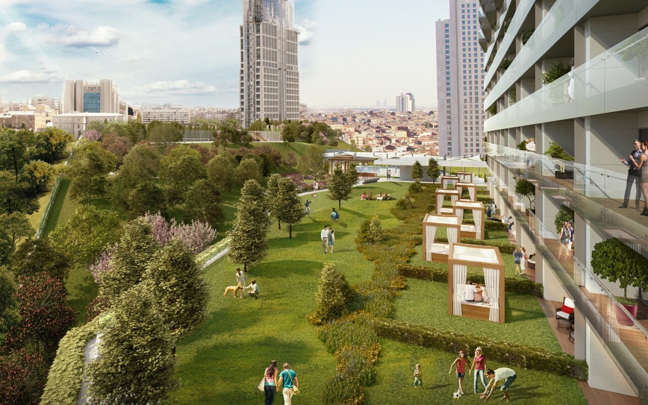 Şehir parkı, Crown Lounge, Çocuk Oyun Alanı, Yürüyüş Parkurları, Kutlama ve davet alanı, Yüzme havuzu, Güneşlenme terasları, Fitness & wellness club, Tenis kortu, Street Ball Sahası, Otopark, Güvenlik, Heliport ve Ticari Alanlar.