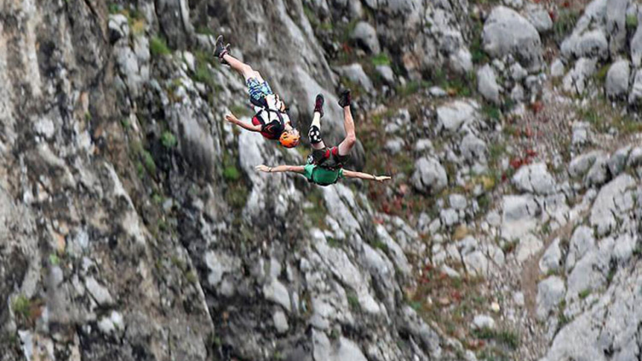 Avustralyalı sporcu Matt Munting ile Güney Afrikalı Nicholas Scalabrino, yaptıkları ikili base jump atlayışı sırasında 500 metre yükseklikten aşağıya doğru süzüldükleri esnada taş, kağıt, makas oynayarak paraşütlerini açtı.