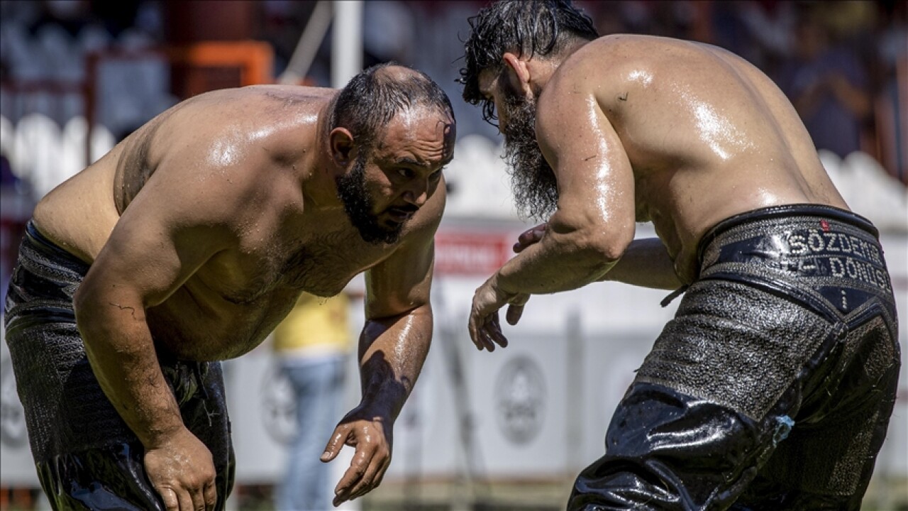Eşleşen başpehlivanlar yağlanmaları ve peşrevle seyirciyi selamlamaları sonrası rakipleriyle müsabakaya başladı.