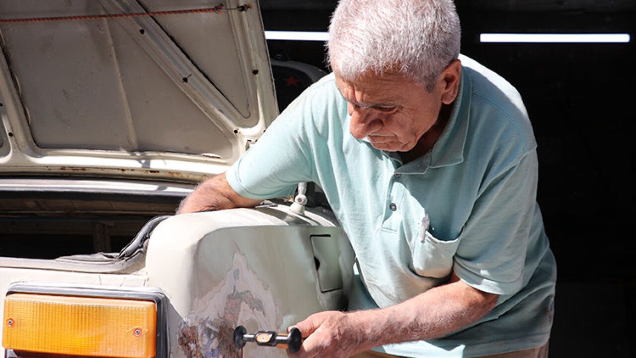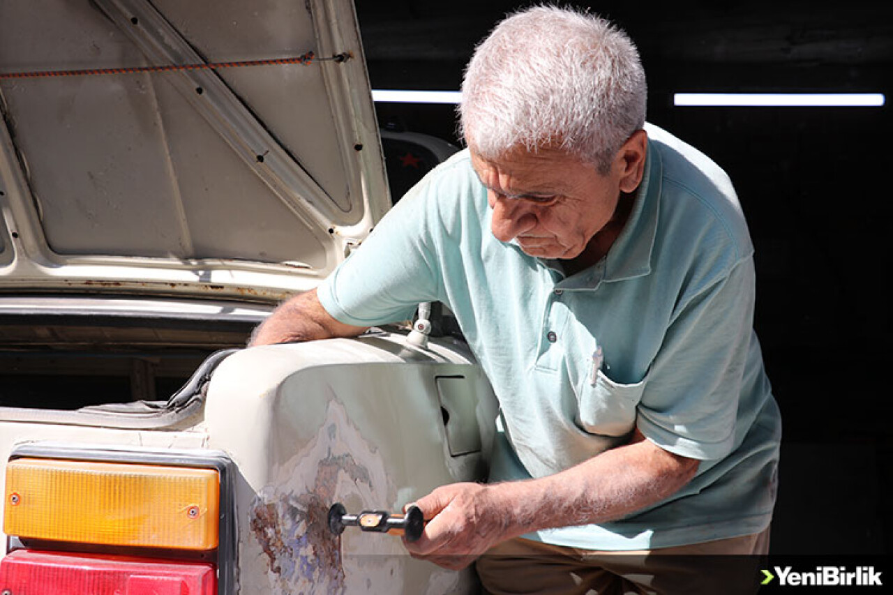 Moral bulması için mesleğine dönmesini isteyen oğlunun ikna etmesi sonucu çalışmaya yeniden başlayan 73 yaşındaki Altındağ, yarım asırdan fazladır kaporta ve çamurluk düzeltme işini titizlikle sürdürüyor.