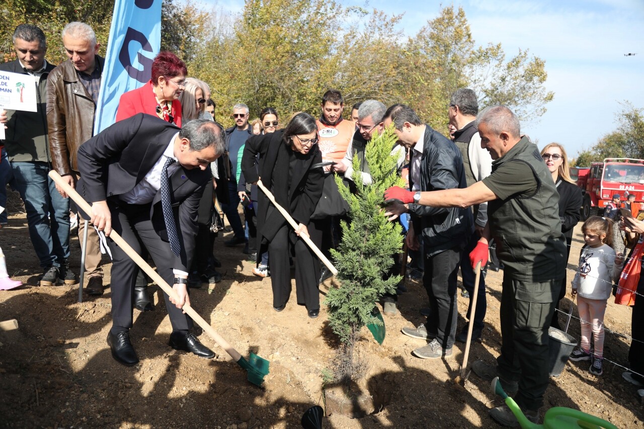 Konuşmaların ardından fidanlar, öğrencilerin yardımıyla dikilmeye başlandı.