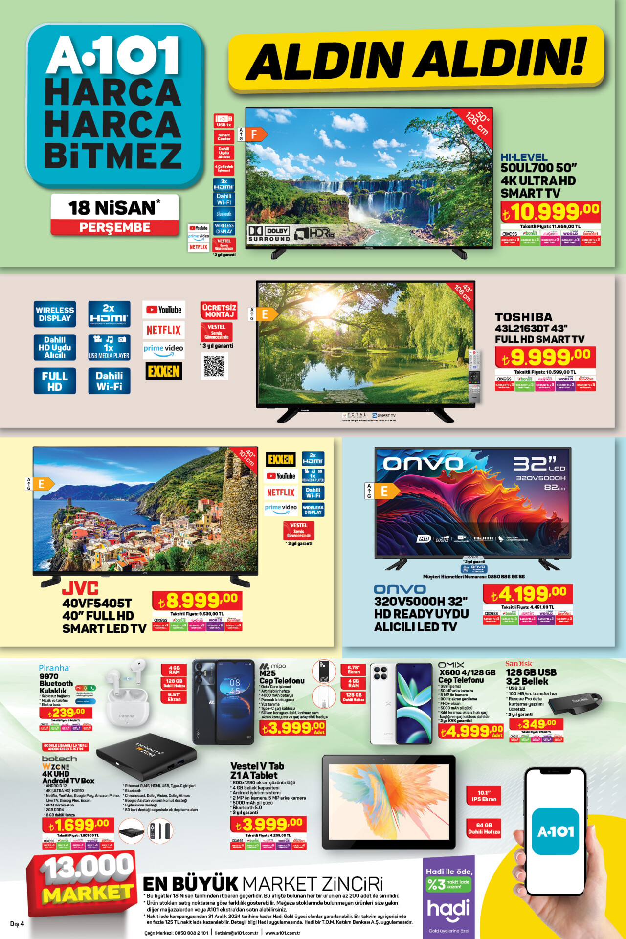 Türkiye’nin 81 ilinde ve her ilçesinde, 500’ün üzerinde tedarikçisi ile perakende sektörünün öncü şirketleri arasında yer alan A101, 18 Nisan’da avantajlı teknolojik ürünleri satışa sunacak.