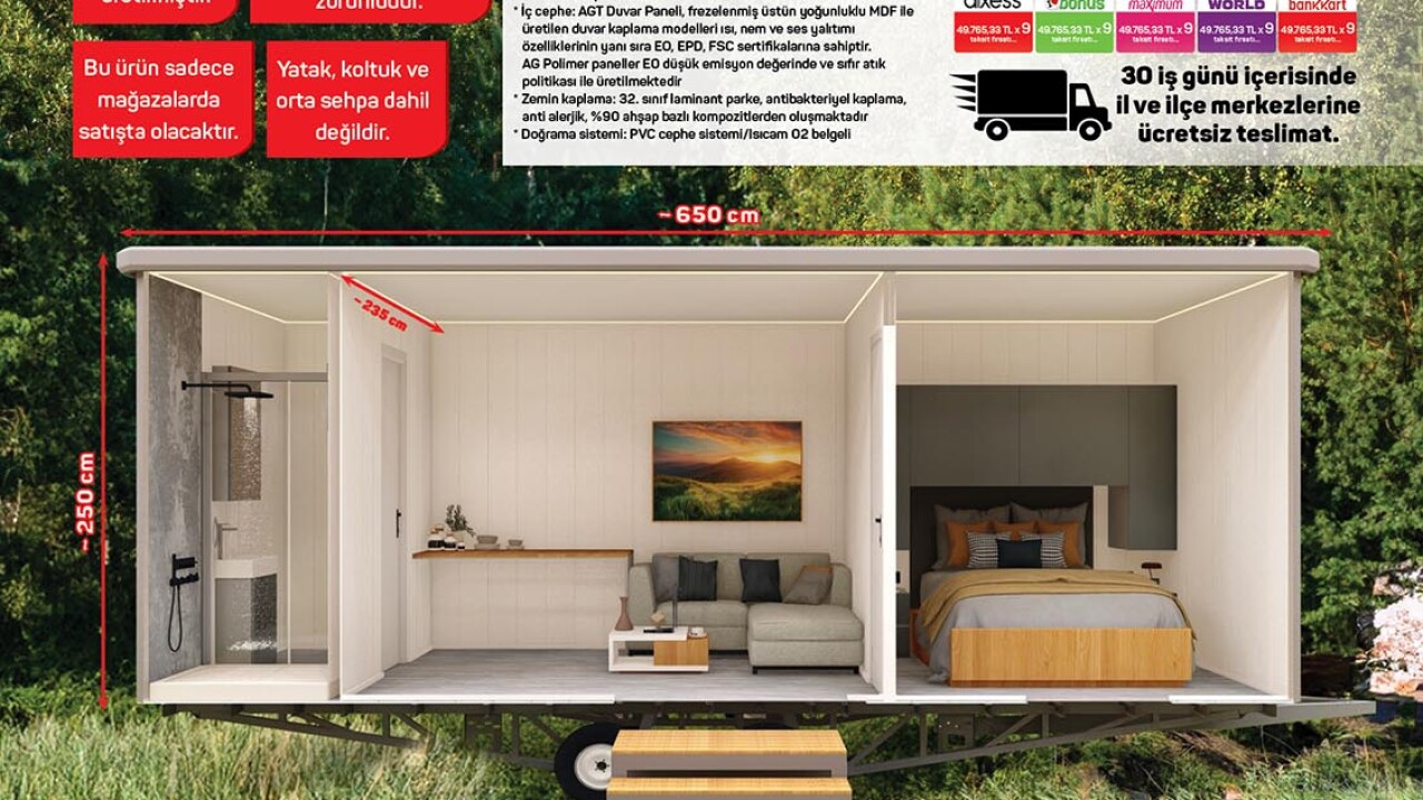 A101’de bu hafta ESCAMP 6500 Flat Tiny House 399.900 TL’ye satışa sunulacak.