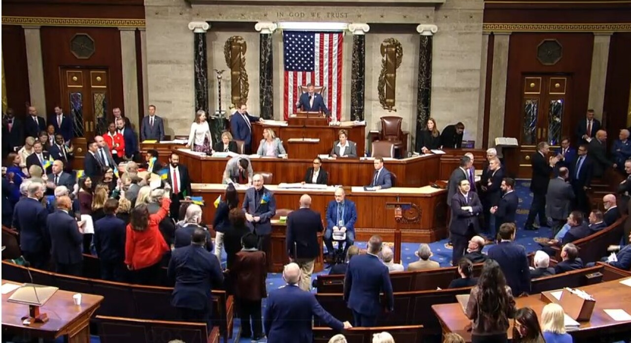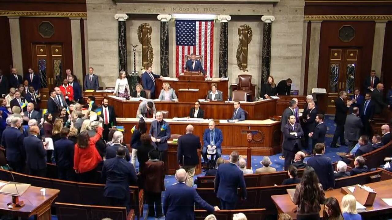 Ukrayna'nın uzun süredir talep ettiği büyük yardım paketine çoğunluğun evet oyu verdiği açıklandığında ABD Temsilciler Meclisi üyelerinin birçoğu salonda tezahürat yaptı ve Ukrayna bayrakları salladı.