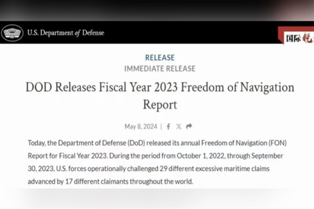 Chen Tingyao'nun haberine göre,Çin Savunma Bakanlığı tarafından kısa süre önce düzenlenen basın toplantısında, ABD Savunma Bakanlığı’nın yayımladığı 2023 Mali Yılı Seyrüsefer Serbestisi Raporu'na tepki gösterildi.