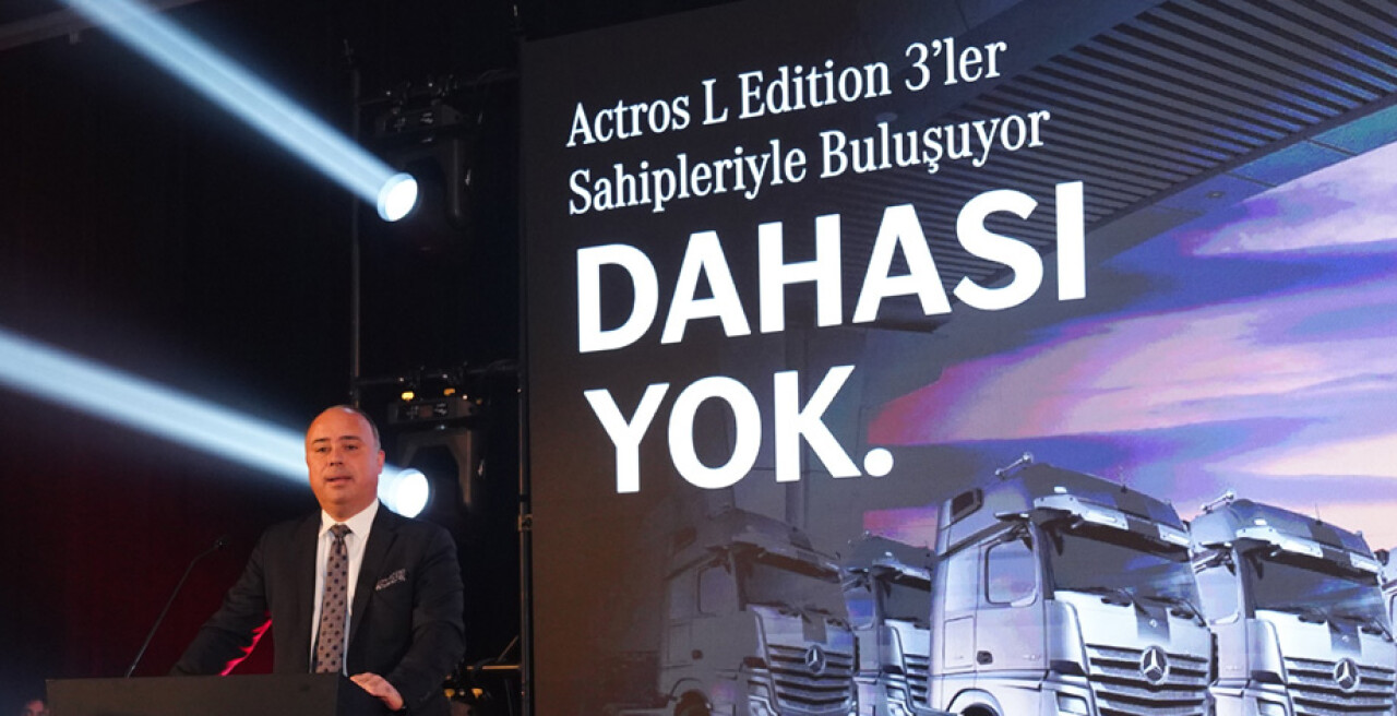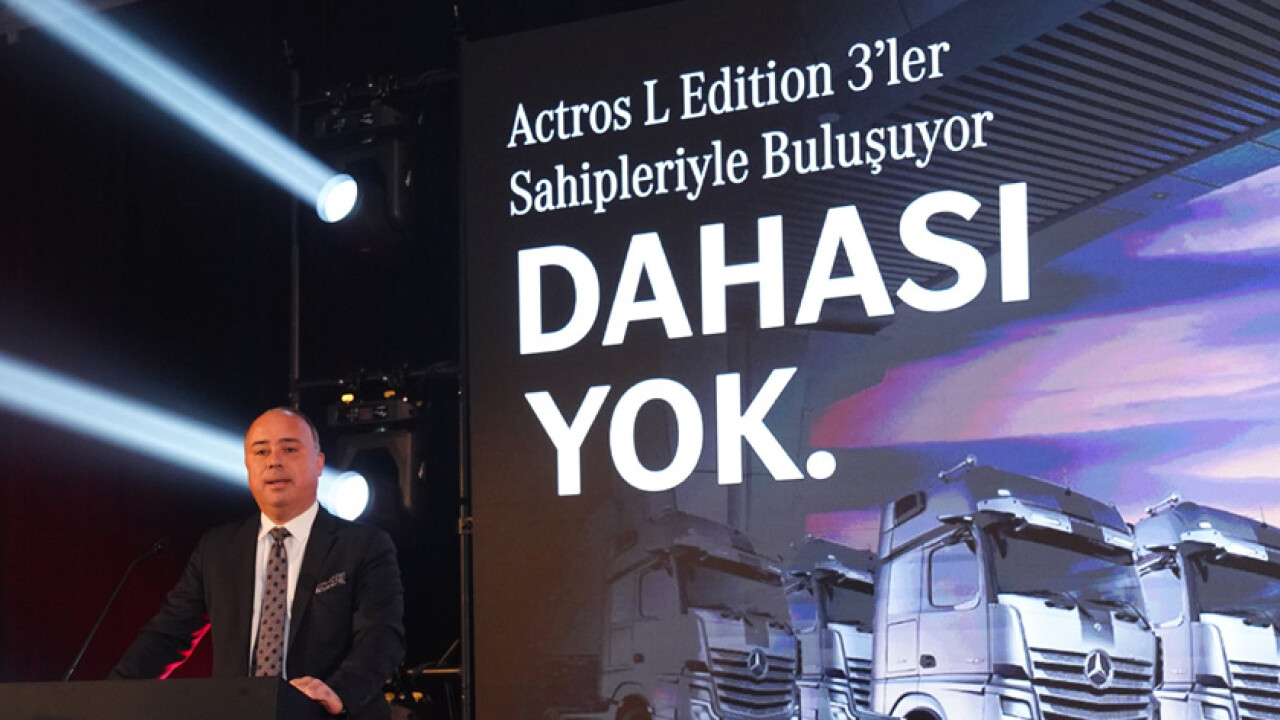 Mercedes-Benz Türk Kamyon Pazarlama ve Satış Direktörü Alper Kurt, “Teknolojinin gücünden de yararlanarak yeni nesil kamyon üretmek ve müşterilerimizi en son teknolojili araçlarla buluşturarak onlara olağanüstü bir sürüş deneyimi sunmak için çok çalışıyoruz. Türkiye’de pazara sunduğumuz 5 farklı Actros çekici modelimize ilave olarak gelen yoğun talepler doğrultusunda; dünyada yalnızca 400 adet üretilen Edition 3 modelimizi de Türkiye’de çok sınırlı sayıda müşterilerimizin beğenisine sunduk. Bu koleksiyon modelimizin Türkiye’de müşterilerimize benzersiz bir deneyim sunacağına inancımız tam. Teknoloji, güvenlik ve konfor konularındaki öncülüğümüzü sürdürmeye kararlıyız. Actros L serisinin Edition 3 modeli de bu taahhüdümüzün bir ifadesi olarak karşınızda. Bugün bu özel aracı sahiplerine teslim edecek olmamız da günü bizim için ayrıca anlamlı kılıyor. Tasarım & konforun benzersiz boyutunu deneyimlemek üzere satın alım tercihlerini bizden yana kullanan müşterilerimize bir kez daha sizlerin huzurunda teşekkür ediyorum. Yeni aracımızın hem müşterilerimize hem de sektörümüze hayırlı uğurlu olmasını diliyorum.” şeklinde konuştu.