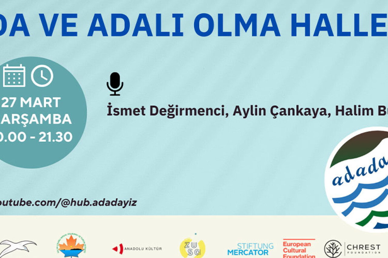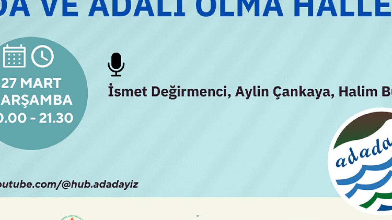 Galimi Çınarlı Derneği ve Adalar Vakfı işbirliğiyle kurulan Adadayız'ın çevrimiçi toplantıları devam ediyor. 27 Mart Çarşamba saat 20.00'de gerçekleşecek olan etkinlikte İsmet Değirmenci, Aylin Çankaya ve Halim Bulutoğlu "Ada ve Adalı Olma Halleri" üzerine konuşacaklar.