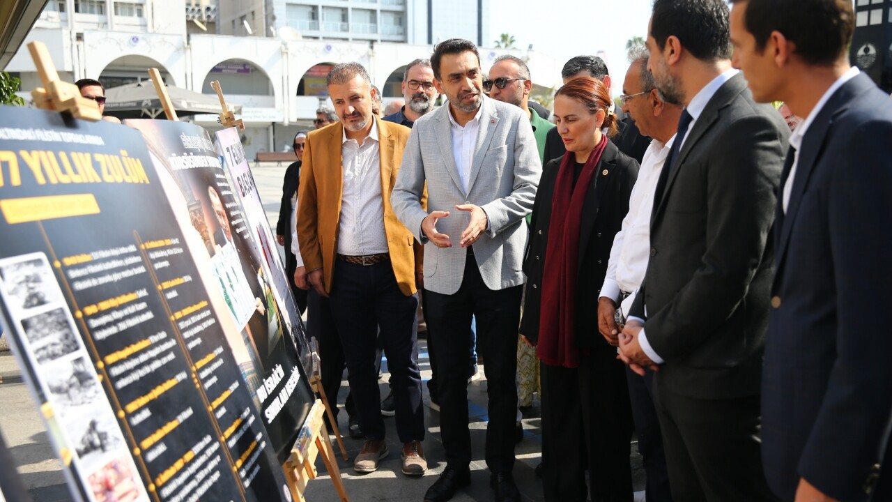 Adana'da Müze Kompleksi önünde bir araya gelen partililer, ellerinde Türk ve Filistin bayrakları taşıdı. Katılımcılar, kompleks önünde İsrail'in saldırılarını anlatan afişleri inceledi.