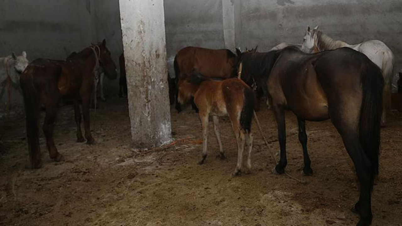 Depoya baskın düzenleyen ekipler, atlara ait olduğu belirlenen sakatat parçaları ve kan izleri olduğun tespit etti. Çalışmalarda kesime hazır halde 3'ü yavru 16 at ele geçirildi.