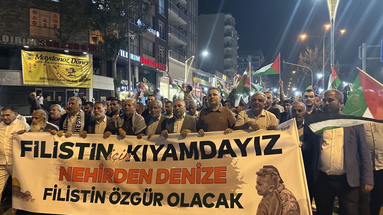 Burada grup adına konuşan Esat Aktan, İsrail'in saldırılarını lanetlediklerini söyledi.