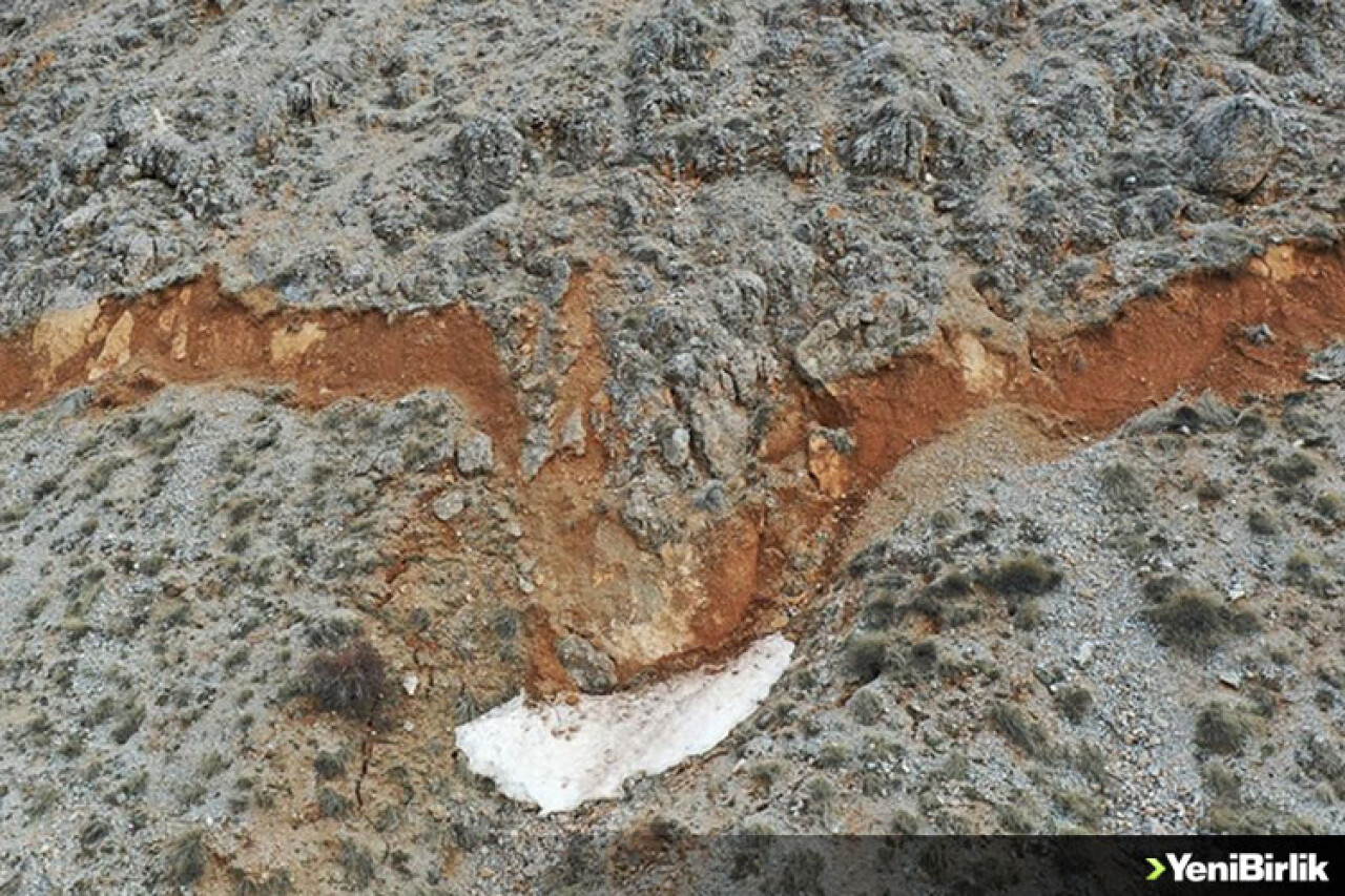 Adıyaman'ın Çelikhan ilçesindeki Akdağ Dağı'nda, depremlerde oluşan yarık ve çökmeler karların erimesiyle ortaya çıktı.
