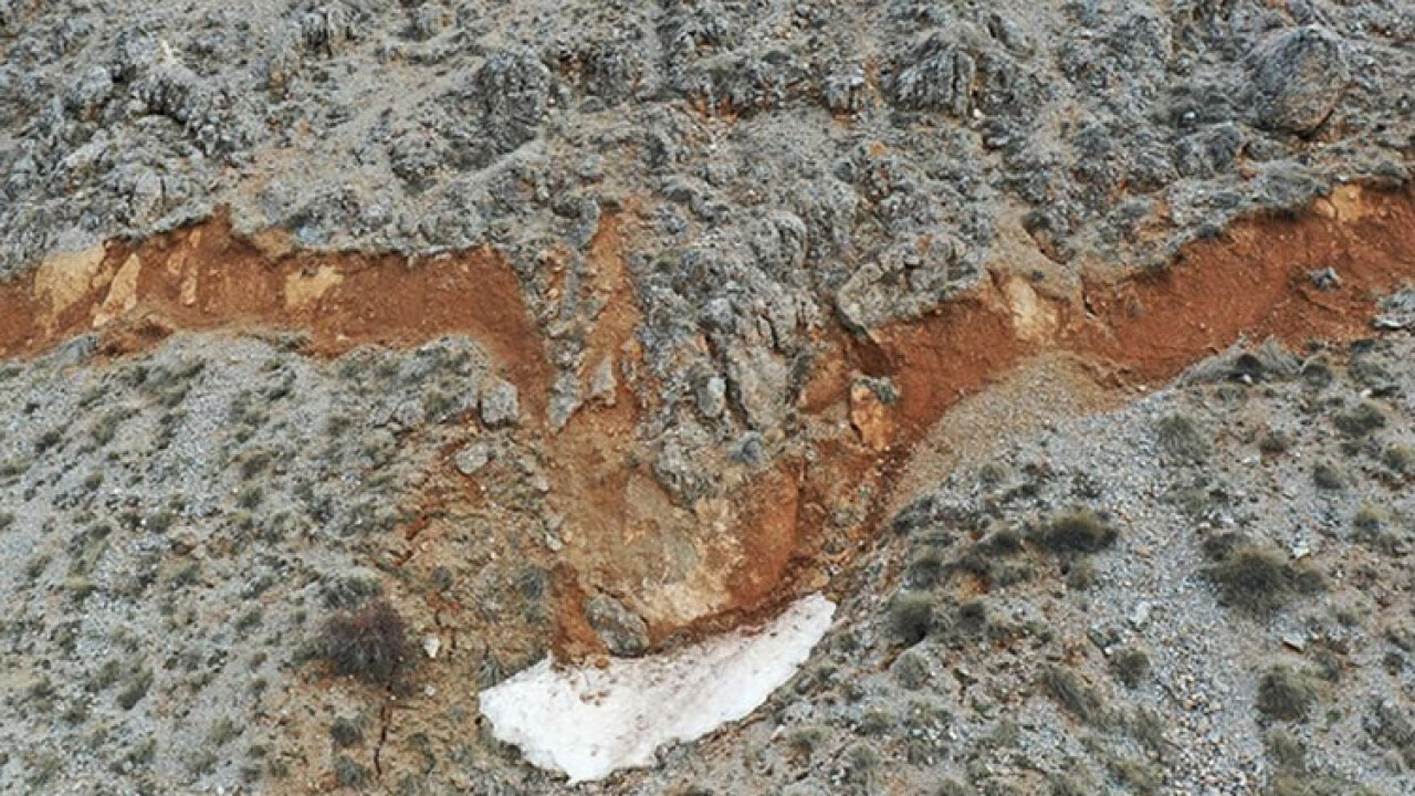 Dağdaki karların erimesiyle ortaya çıkan ve depremin büyüklüğünü gözler önüne seren yarıklar ve çökmeler, Anadolu Ajansı ekibince dronla görüntülendi.