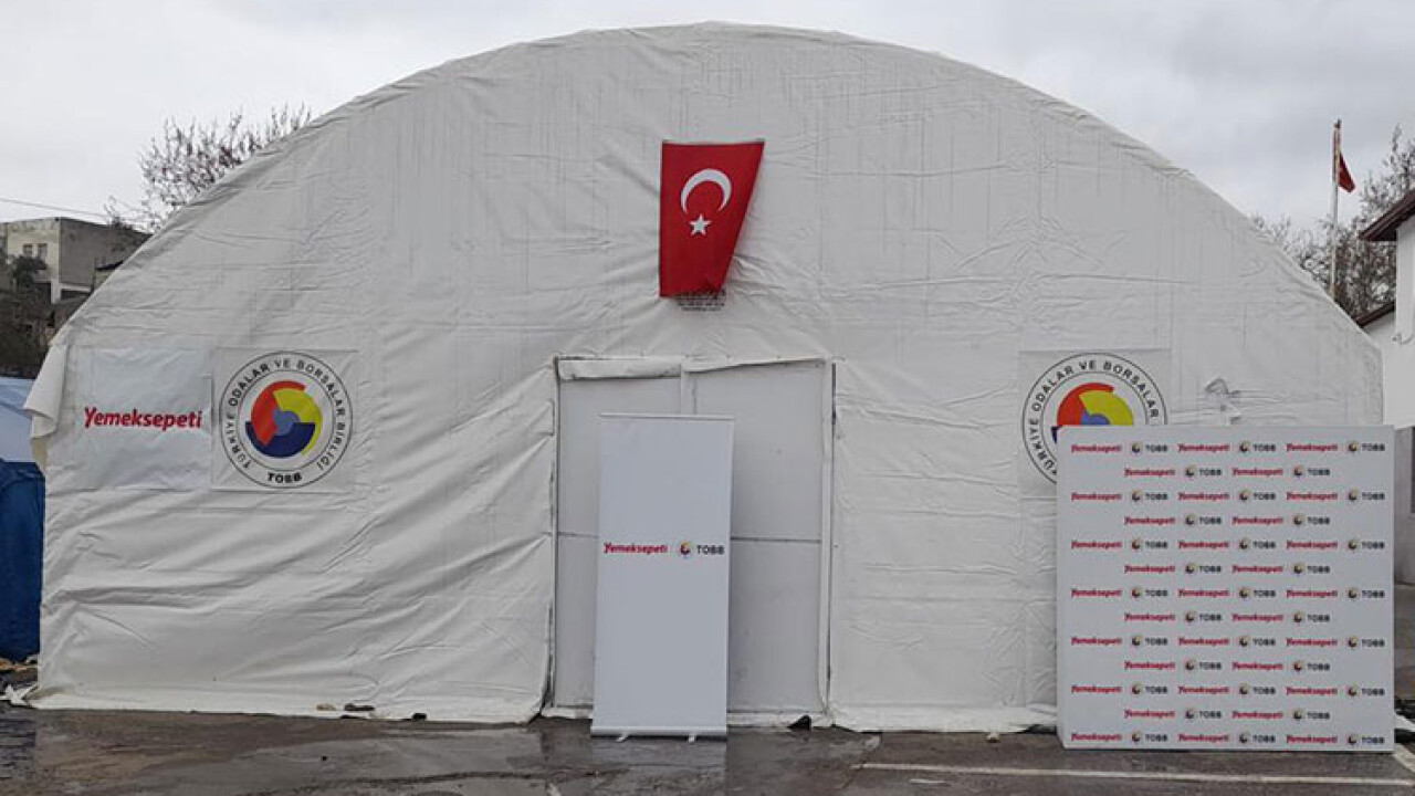Türkiye Odalar ve Borsalar Birliği (TOBB) ve Yemeksepeti iş birliğiyle Adıyaman'da yaşayan depremzedeler için kurulan çadırda ramazan ayı boyunca iftar yemeği ve Ramazan Bayramı'nda yemek dağıtımı gerçekleştirilecek.