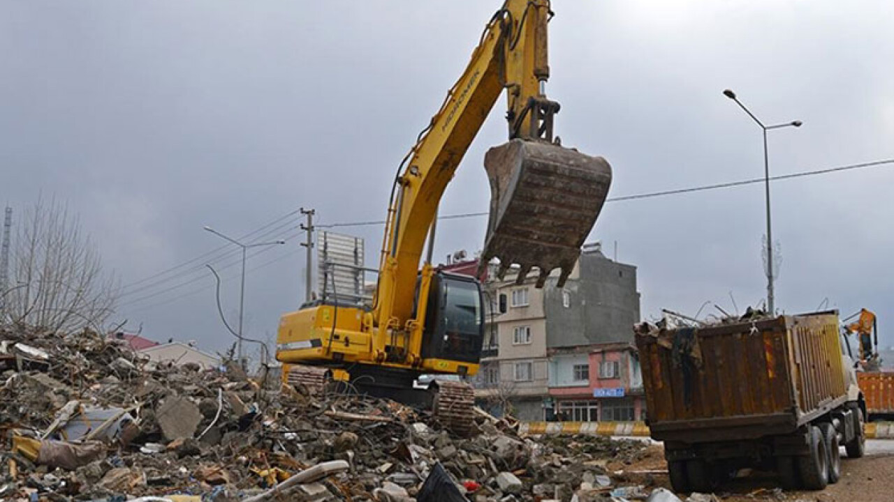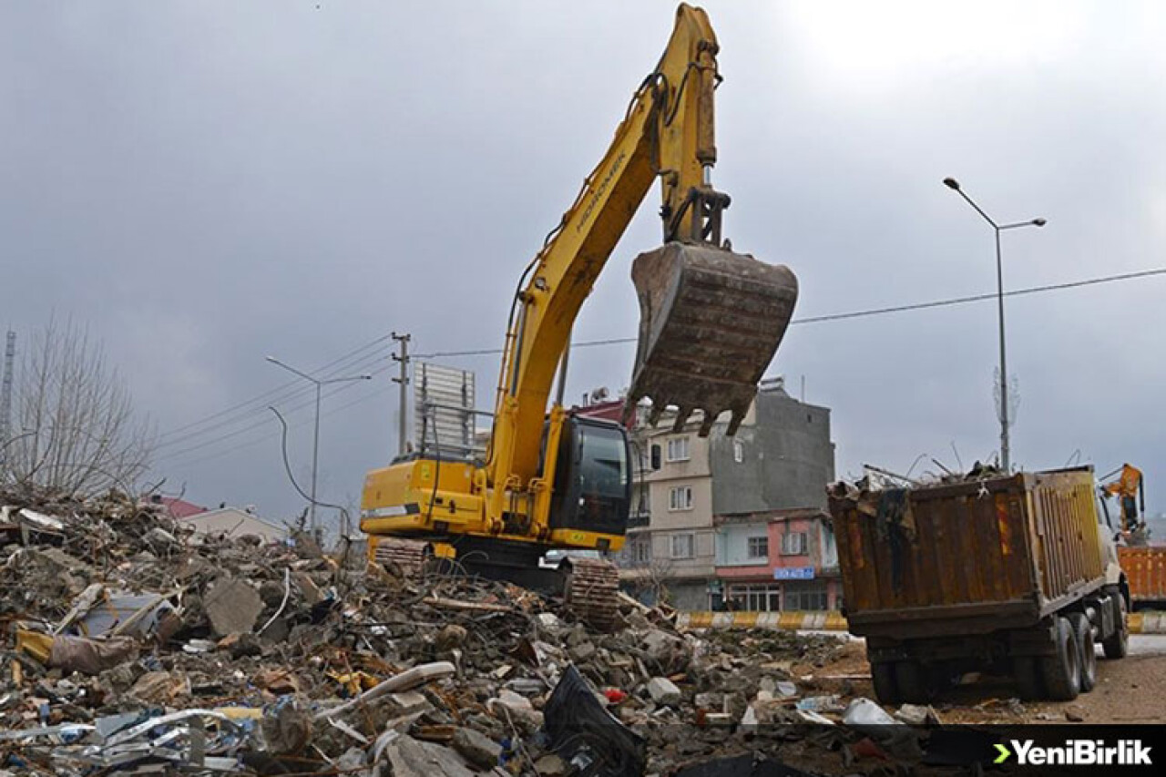 Kentte depremde yıkılan veya hasar gören binalardaki tespit işlemlerinin ardından enkaz kaldırma çalışmaları yürütülüyor.