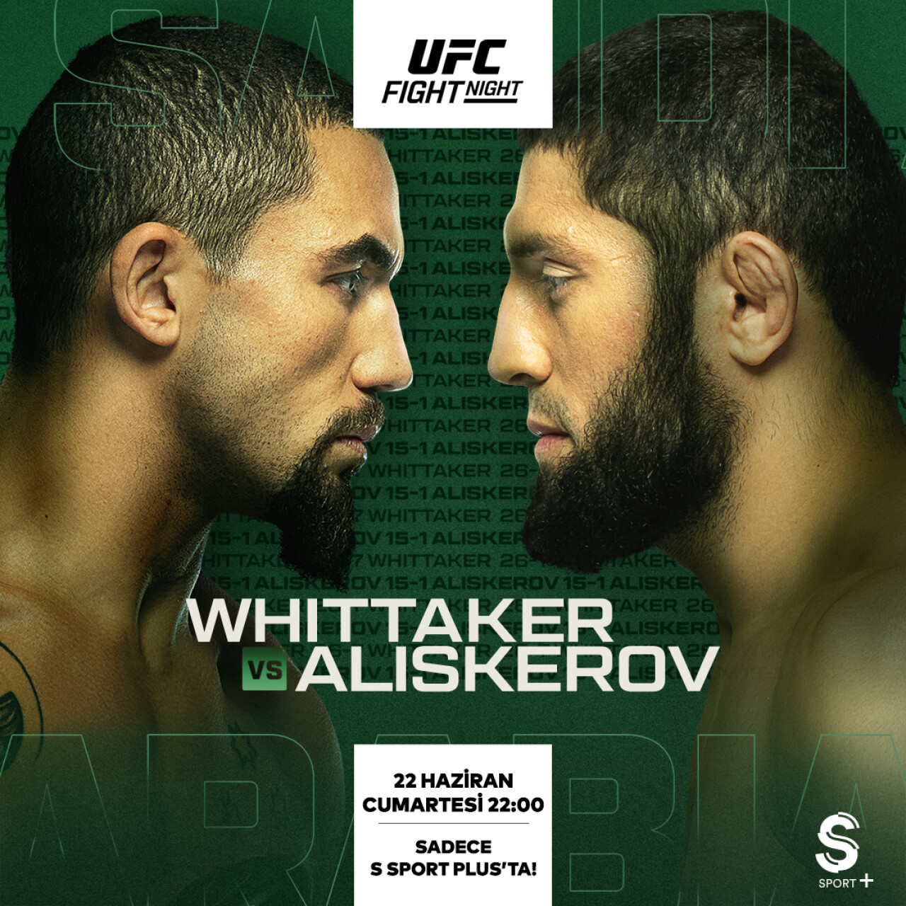 S Sport Plus'ta UFC dövüş heyecanı bitmiyor! Riyad'da 22 Haziran Cumartesi günü, saat 22.00'de Kingdom Arena'da gerçekleşecek kıyasıya mücadelede MMA dünyasının en önde gelen isimlerinden eski şampiyon Robert Whittaker ile UFC'nin yükselen yıldızlarından İkram Aliskerov karşı karşıya gelecek. Dövüş severlerin heyecanla beklediği bu muhteşem gece Türkiye'de ilk kez yerinden anlatım ile S Sport Plus'ta, canlı yayınla izleyiciyle buluşacak.