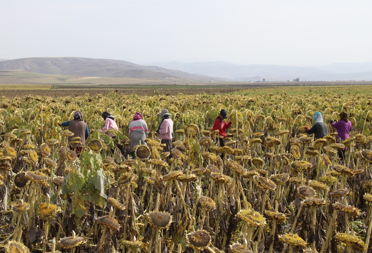 Kentin verimli toprakları ve sulama imkanlarının gelişmesiyle geniş ovada çiftçilerce yaklaşık 34 bin dekarlık alanda ekilen çerezlik ayçiçeğinin hasadı devam ediyor.