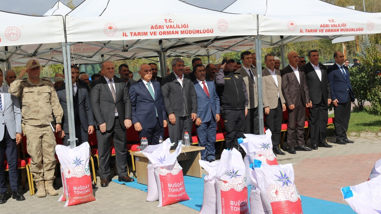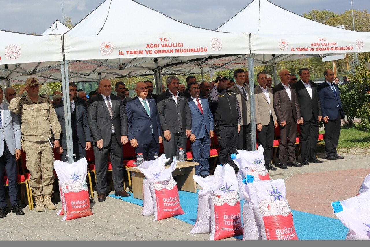 Doğu Anadolu Projesi (DAP) tarafından yüzde 70 hibeyle 300 ton sertifikalı buğdayın çiftçilere dağıtılması için İlçe Tarım ve Orman Müdürlüğü bahçesinde tören düzenlendi.