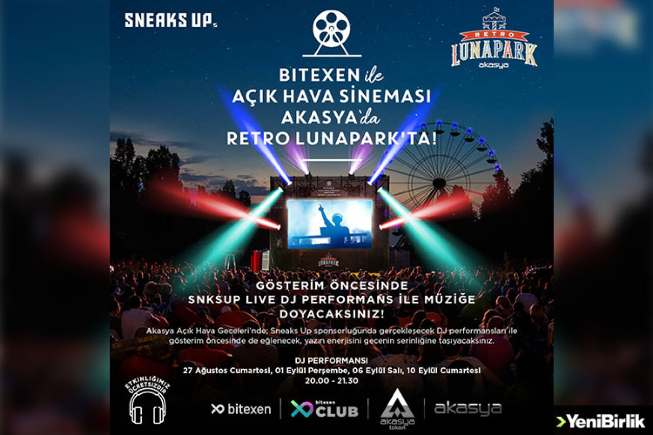 İstanbul'un cazibe merkezleri arasında yer alan ve düzenlediği etkinlikler ile ziyaretçilerine keyifli anlar yaşatan Akasya'da, açık hava sineması etkinliği devam ediyor. 23 Ağustos'ta başlayan ve bu hafta sona ermesi planlanan etkinlikte sinemaseverler, bünyesinde 200'den fazla kripto varlık bulunan dijital varlık alım-satım platformu Bitexen'in ana sponsorluğu ile, Akasya Retro Lunapark'ta saat 21:30'da başlayan gösterimlerde, keyifli filmleri ücretsiz olarak izleyebiliyor. Bitexen Club kullanıcıları gösterimlere kontenjanla sınırlı özel bir VIP alanda katılabiliyor. Detaylara bitexenclub.com'dan ulaşılabiliyor.