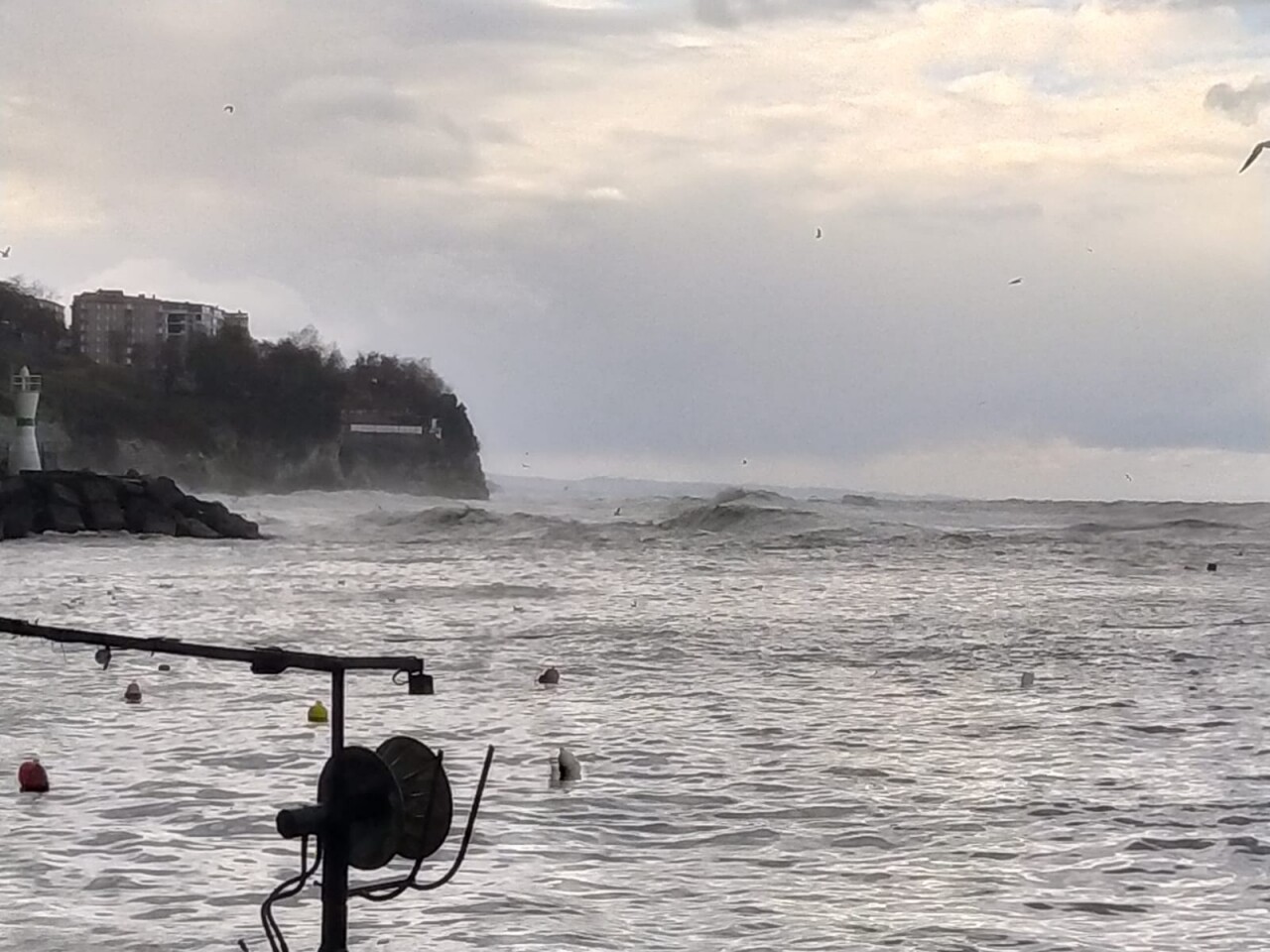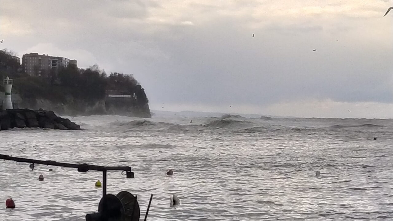 Kuvvetli rüzgar nedeniyle denizde dalga boyu yükseldi. Dalgalar zaman zaman kıyı şeridindeki istinat duvarlarını aştı.