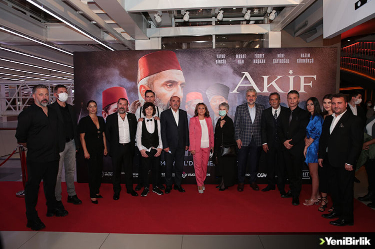 Mehmet Âkif Ersoy'un İstiklal Marşı'nı yazarken yaşadıklarını konu alan "Âkif" filmi, 24 Eylül Cuma günü vizyona giriyor. Mehmet Âkif Ersoy'u Yavuz Bingöl'ün, Mustafa Kemal Atatürk'ü ise Fikret Kuşkan'ın canlandırdığı filmin galası, ÖzdilekPark Cinetime'da yapıldı. Geceye Mehmet Âkif Ersoy'un torunu Selma Ersoy Argon da katıldı.