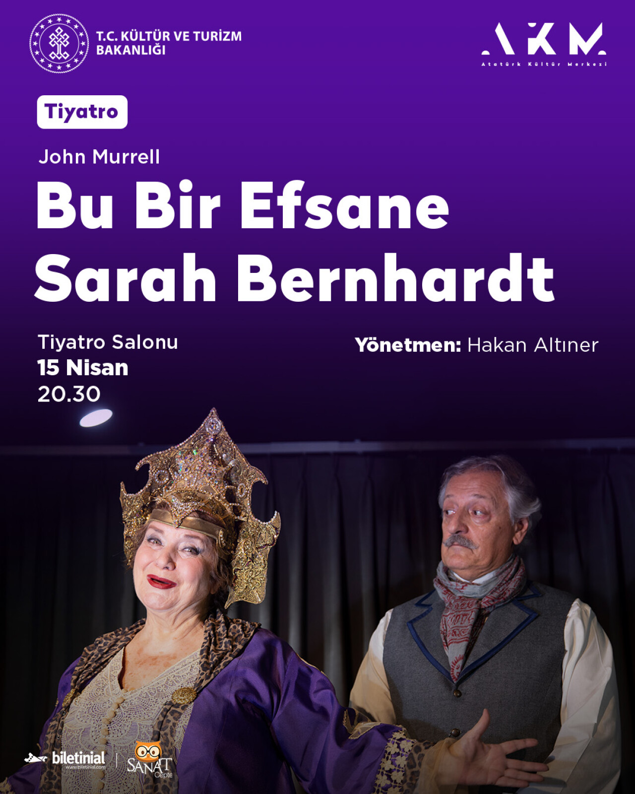 Sarah Bernhardt'ın unutulmaz eseri ‘Bu Bir Efsane’, 15 Nisan Pazartesi saat 20.30'da AKM Tiyatro Salonunda seyircilerle buluşacak. Oyun, dünya tiyatrosunun en büyük efsanelerinden biri olan Sarah Bernhardt'ın yaşamından ilham alarak kurgulandı. Yazar John Murrell tarafından kaleme alınan ve yönetmenliğini Hakan Altıner'in üstlendiği oyun, başrollerinde Dilek Türker ve Tayfun Yılmaz'ın performanslarıyla izleyicilere unutulmaz bir deneyim sunacak. ‘Bu Bir Efsane’, izleyicilere Sarah Bernhardt'ın hayatından çarpıcı kesitleri sunarken, aynı zamanda sanatın ve tutkunun gücünü keşfetmelerine olanak tanıyacak.