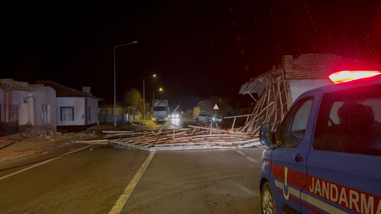 Çatı parçalarından dolayı kara yolu trafiğe kapandı.
