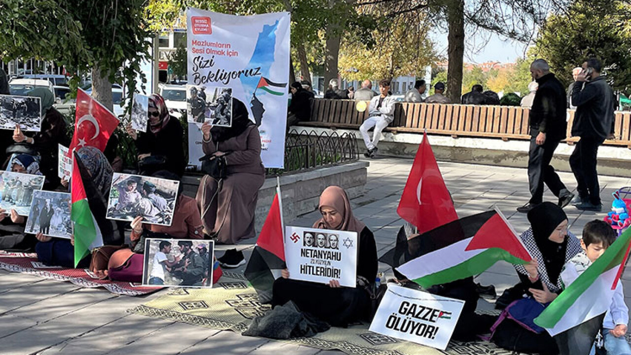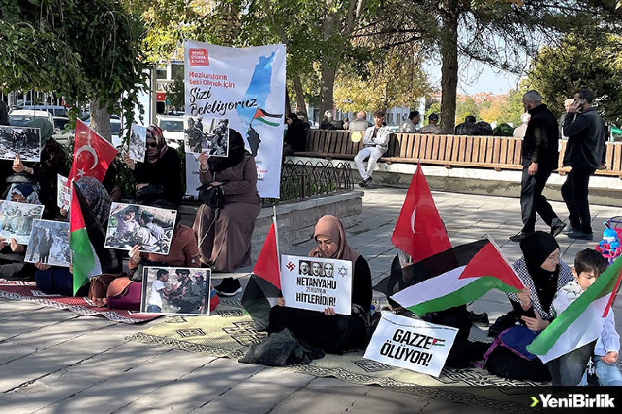 Aksaray'da kadınlar, İsrail'in saldırıları sonucu yaşamını yitirenler için sessiz oturma eylemi yaptı.