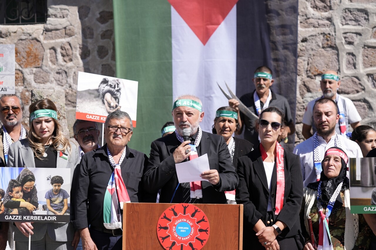 Ankara Mamak Hüseyin Gazi Türbesi Cem Evi'nde bir araya gelen grup adına açıklama yapan Hüseyin Gazi Kültür ve Sanat Vakfı Başkanı Ali Timurtaş Özmen, Alevi dedeleri olarak Gazze katliamının başladığı ilk günden beri bu soykırıma tepki gösterdiklerini söyledi.