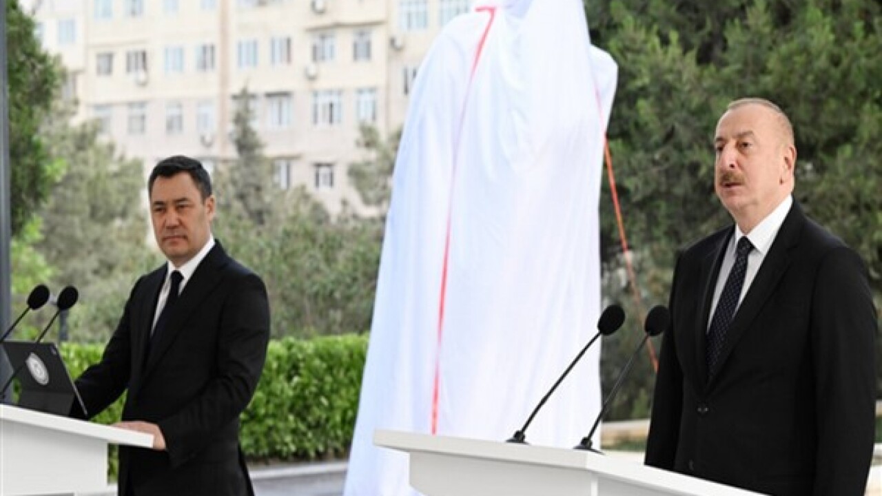 Azerbaycan Cumhurbaşkanı İlham Aliyev ve Kırgızistan Cumhurbaşkanı Sadır Japarov, Bakü'de ünlü Kırgız yazarı Çingiz Aytmatov'un anıtının açılış törenine katıldı.