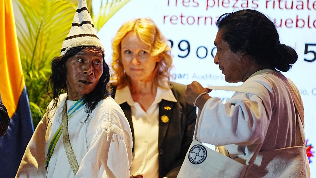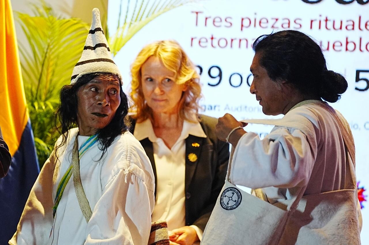 Kolombiya Cumhurbaşkanlığının basın biriminden yapılan açıklamada, ulusal hükümetin talebi üzerine Berlin Etnoloji Müzesi'nde tutulan ve Kogui Yerlilerine ait üç parçanın ülkeye teslim edildiği bildirildi.
