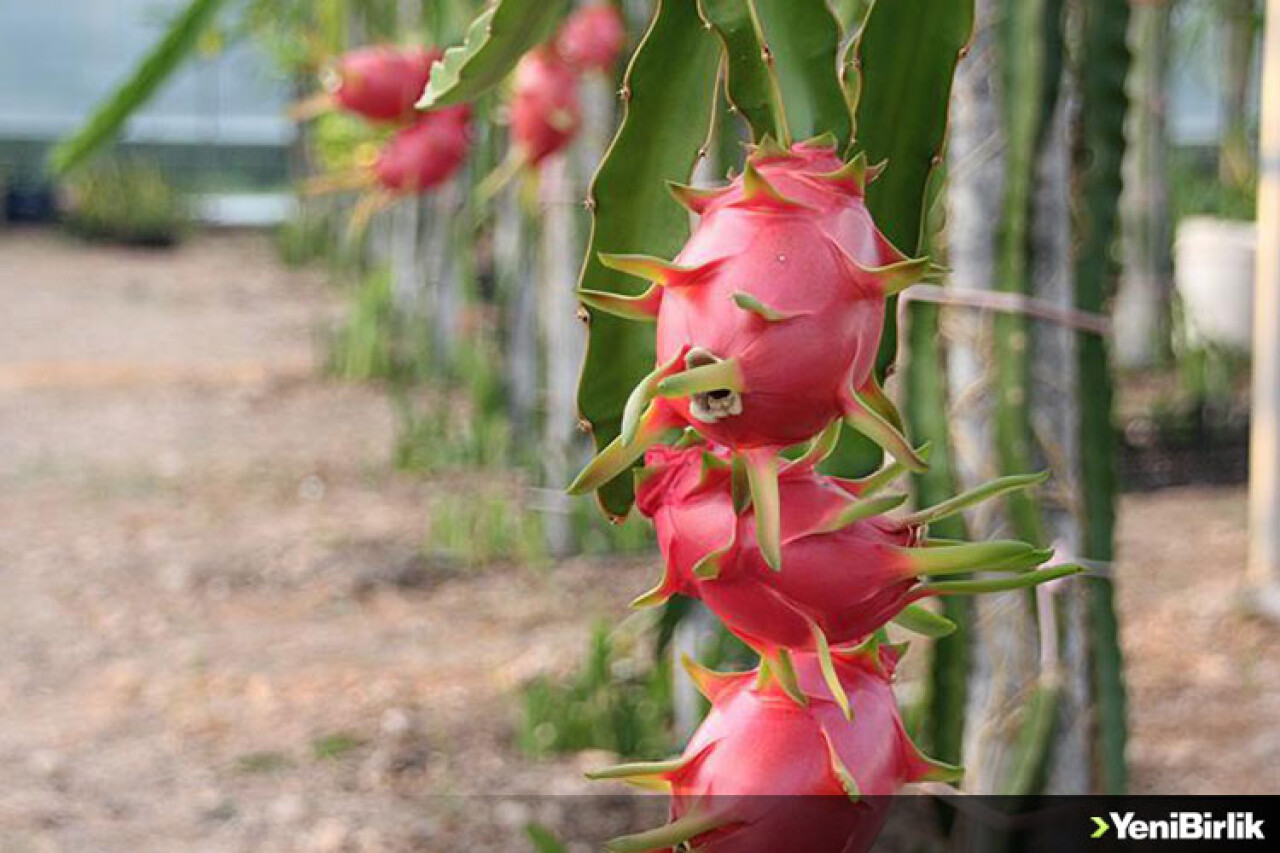 YENİBİRLİK MERSİN - Mersin'de alternatif tarım kapsamında oluşturulan ve yaklaşık bir yıllık üretim hazırlığının ardından toplanmaya başlanan ejder meyvesi (pitahaya), tanesi 11 ila 16 lira arasında alıcı buluyor. Anavatanı Vietnam olan, dondurma yapımı, salata ve ilaç sanayilerinde kullanılan, ağırlığı 300 gramdan bir kiloya kadar çıkabilen tropikal meyve, narenciye ve sebze üretimine alternatif ürün olarak tercih ediliyor.