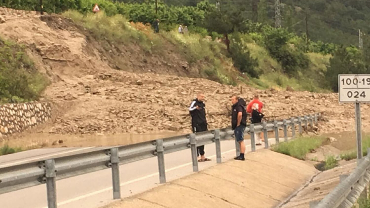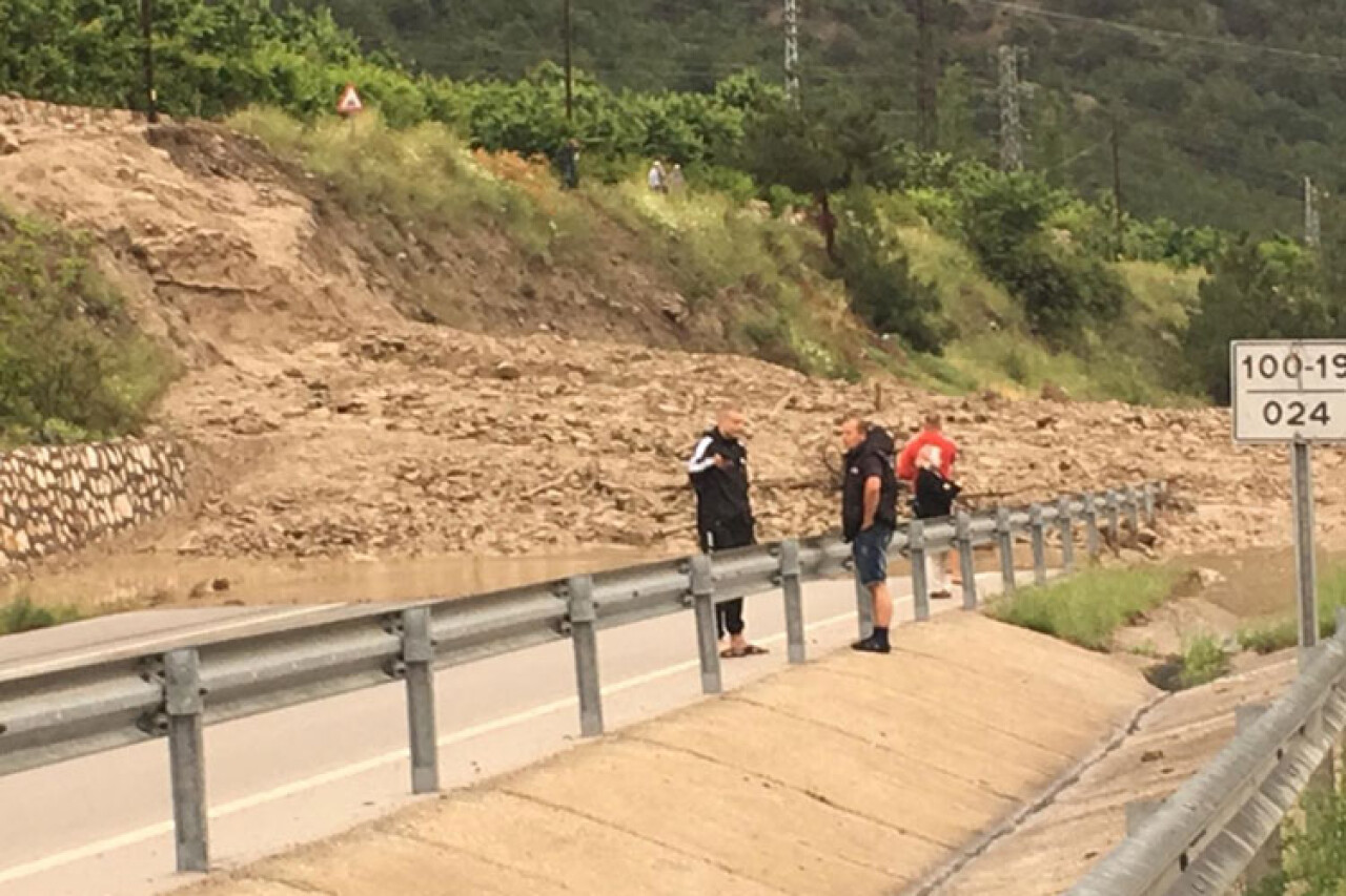 Karayolları ve DSİ ekiplerinin, suyu tahliye etme, yoldaki taş ve diğer malzemeleri temizleme çalışmaları devam ediyor.