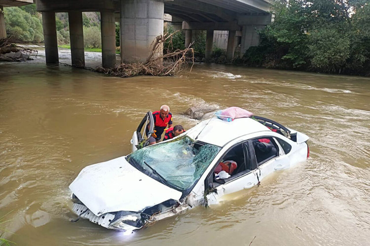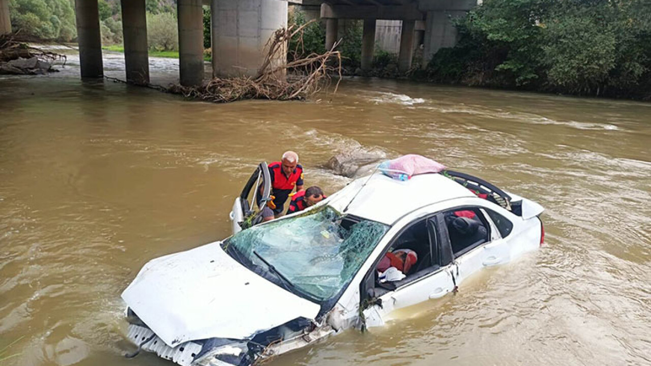 Amasya'nın Taşova ilçesinde Yeşilırmak'a düşen otomobildeki 1'i çocuk 5 kişi yaralandı.