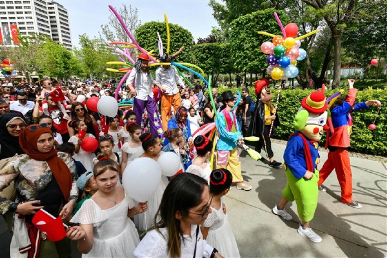 Gençlik Parkı’nda düzenlenen Çocuk Şenliği’nde yarışmalardan konserlere, korodan yüz boyamaya, halk oyunlarından Karagöz Konserde konulu tiyatro gösterisine, pamuk şeker ikramından balon kortejine kadar pek çok etkinlik gerçekleştirildi.