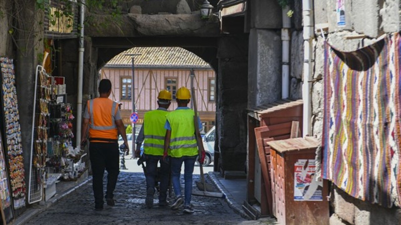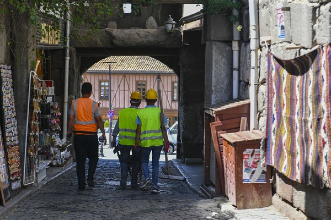 Ankara Kalesi’nde Sokak Sağlıklaştırma ve demir korkuluk çalışması yapıp Zindankapı Burcu, Güney Burçları ile Saat Kulesi’nin 469,12 metrekare alana yayılan surlarını onarıp güçlendiren Ankara Büyükşehir Belediyesi, şimdi de Hisar Kapısı’nda tarihi dokuya zarar vermeden titiz bir çalışma yürütüyor.