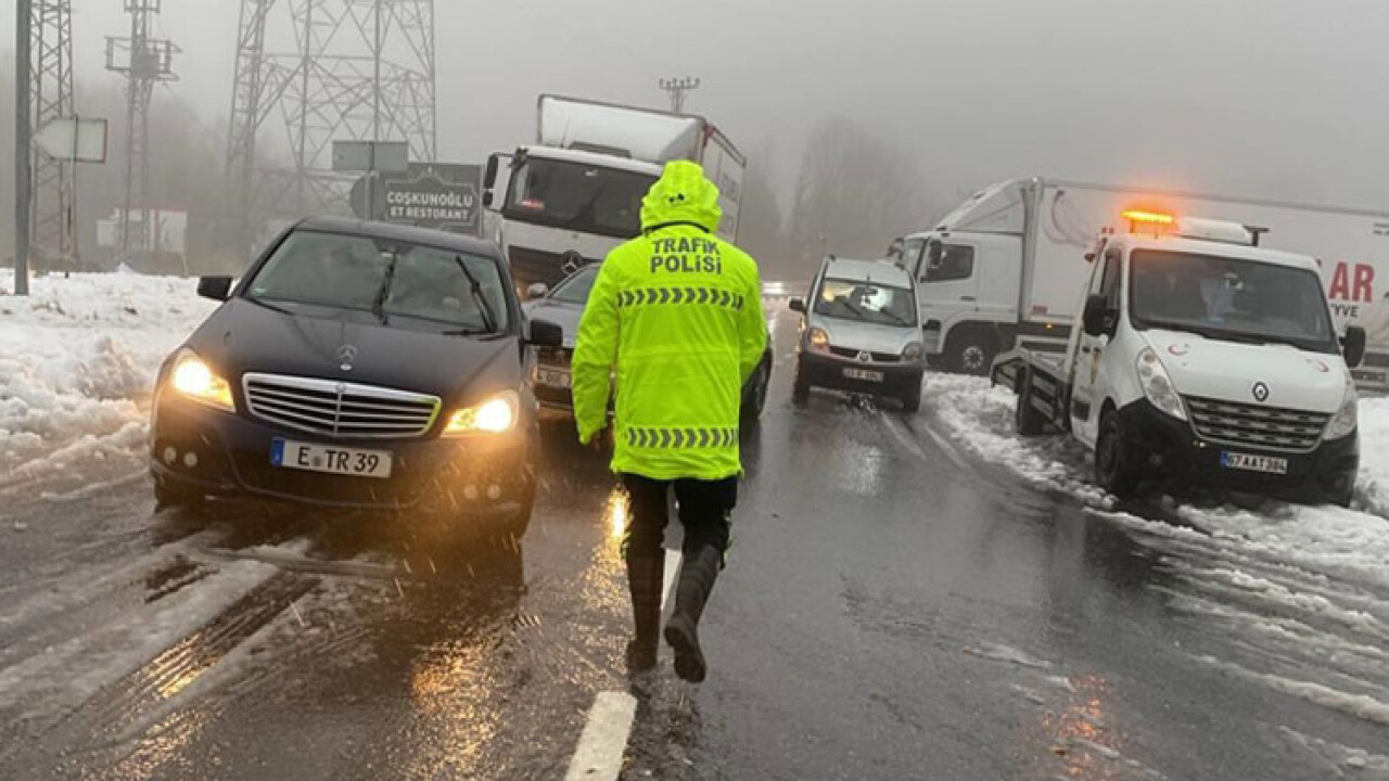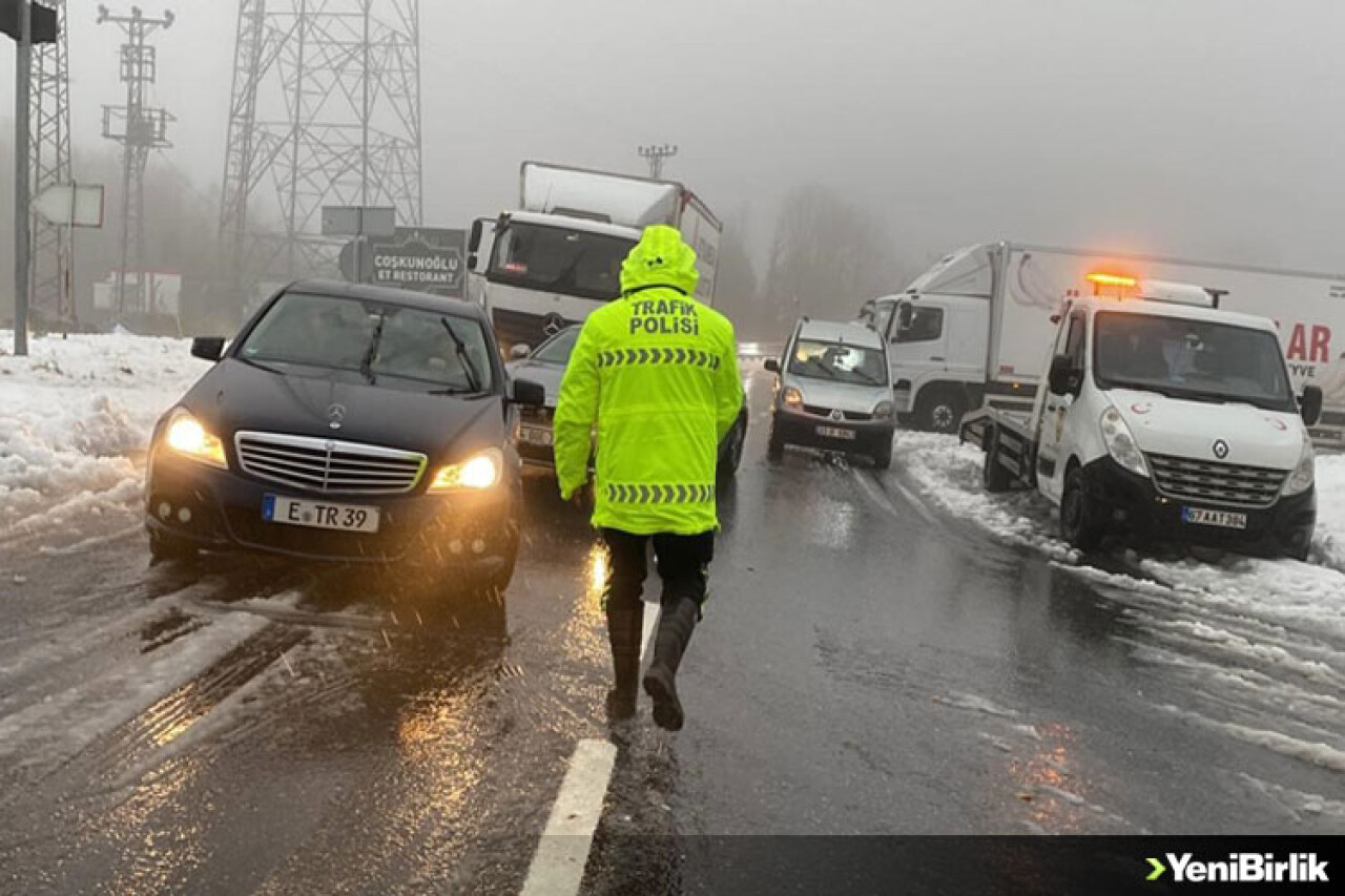 Kayan veya kış lastiği bulunmadığı için yavaş ilerleyen araçlar nedeniyle otoyolda da aksamalar yaşanıyor.