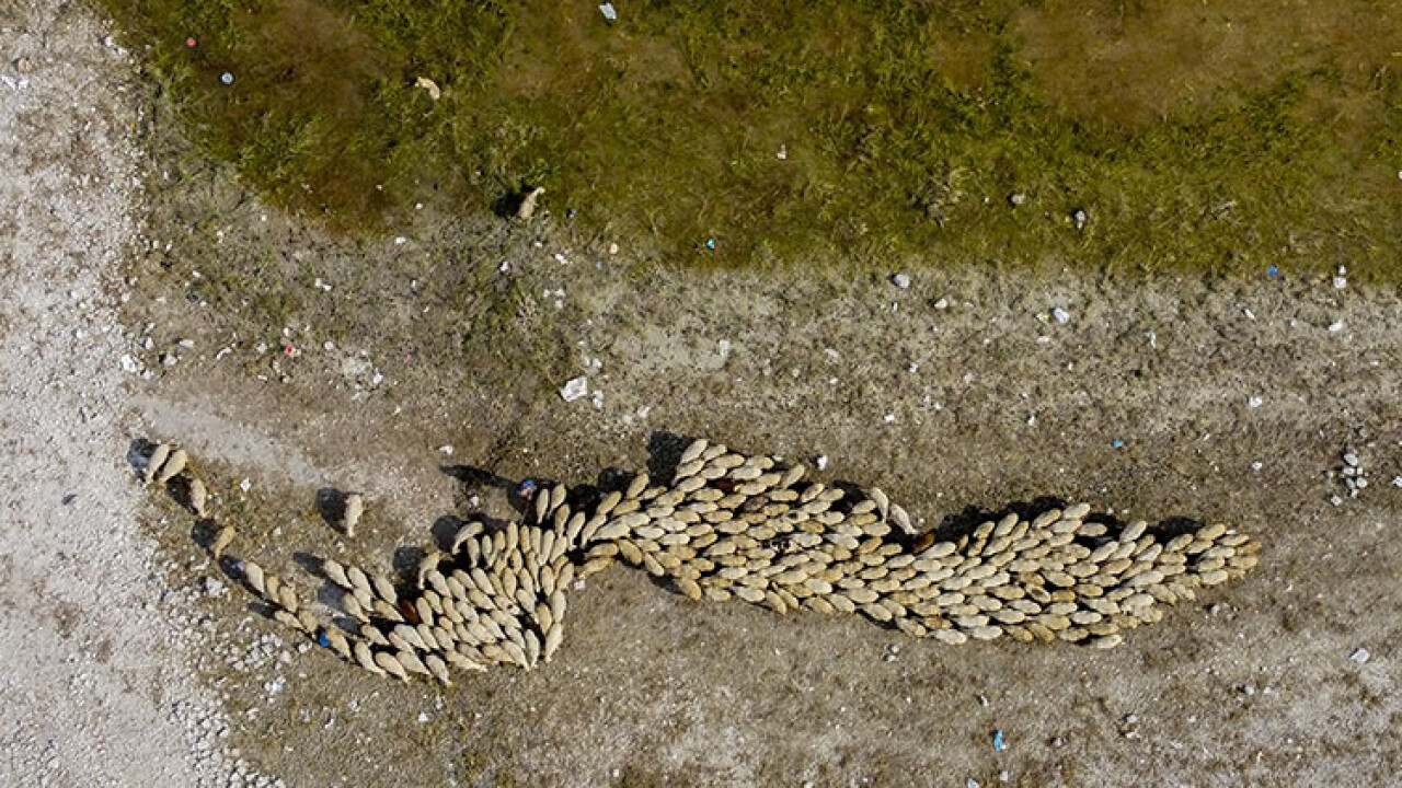 Çobanlar, hayvanlarını Asartepe Barajı'nda otlatıyor.