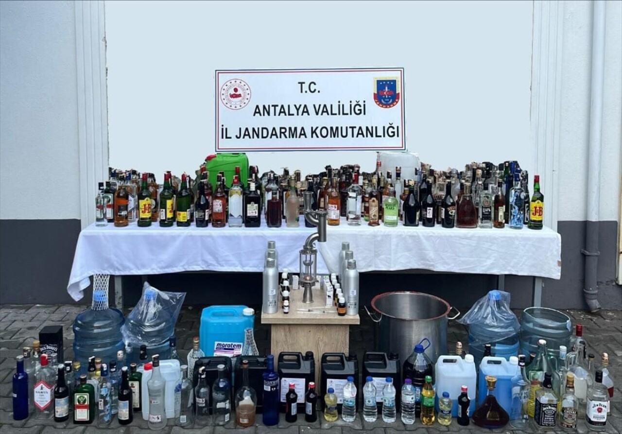 İl Jandarma ve Manavgat İlçe Jandarma Komutanlığı ekiplerince şüpheliye ait evde düzenlenen operasyonda, şişelenmiş 725 litre sahte içki, 90 litre etil alkol ile sahte içki yapımında kullanılan düzenek ele geçirildi.
