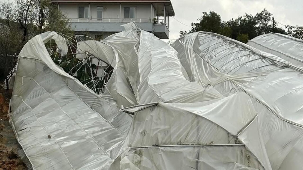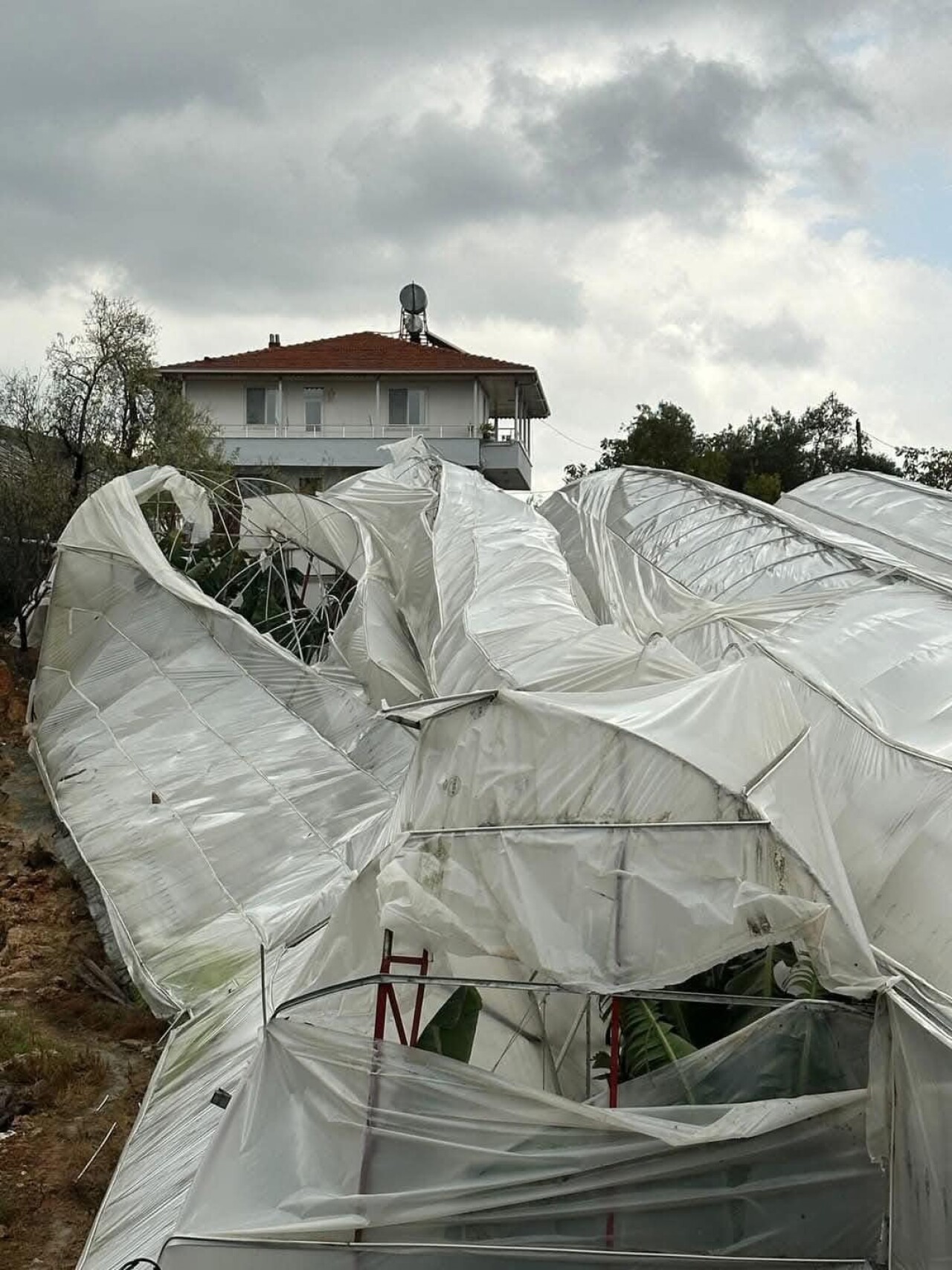 İki kez görülen hortum, çiftçilerin seralarının naylon kaplamalarını parçaladı, demir konstrüksiyonları eğdi ve tarım ürünlerin zarar görmesine neden oldu.