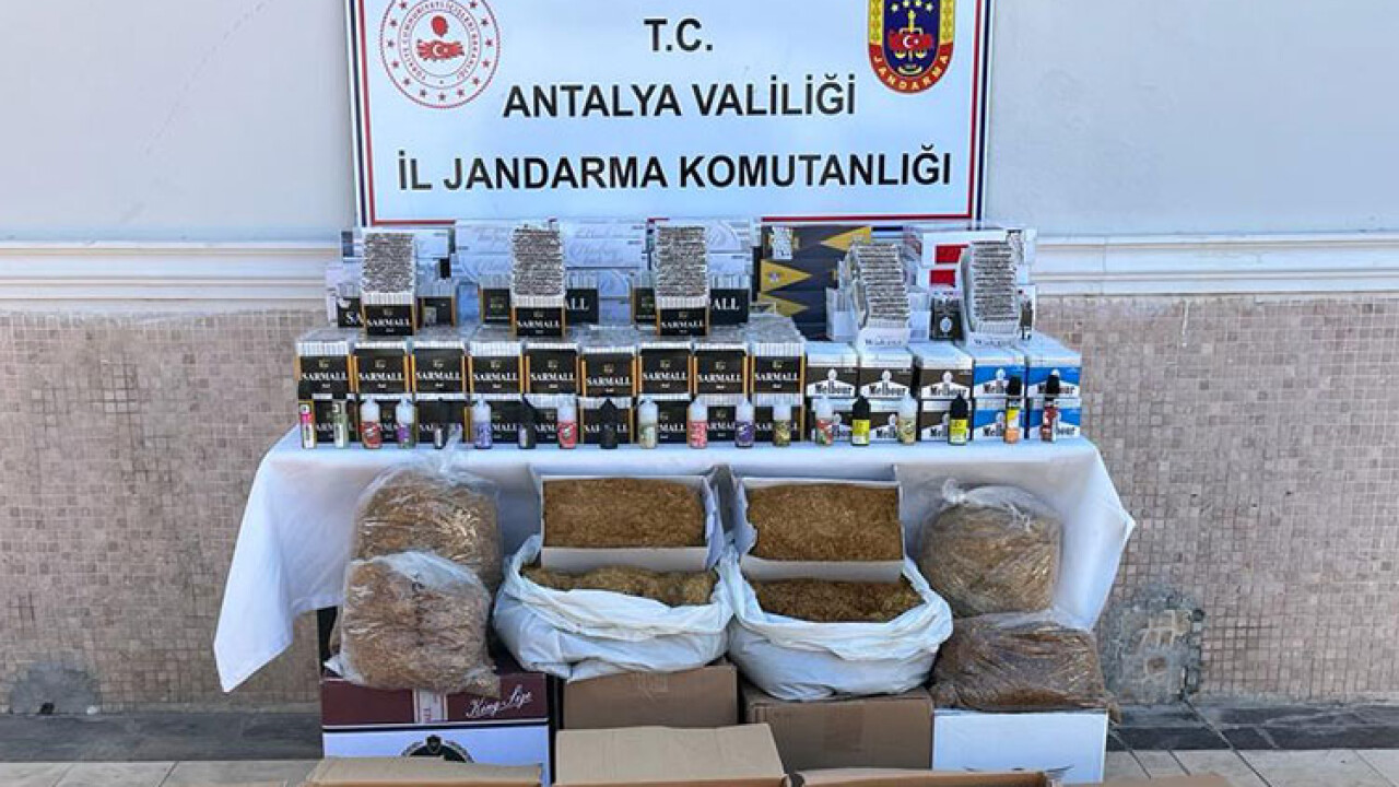 Şüphelilerin Kepez ve Manavgat ilçelerindeki adreslerinde 53 bin 760 doldurulmuş makaron, 18 bin 600 boş makaron, 357 paket gümrük kaçağı sigara, 103 elektronik sigara, 77 kilogram bandrolsüz kıyılmış tütün, 110 elektronik sigara kiti ile 353 kaçak parfüm ele geçirildi.