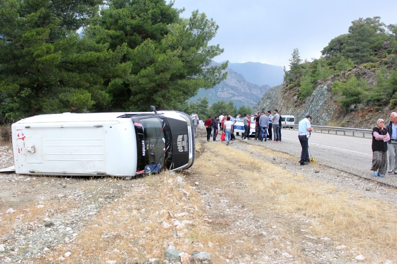 Edinilen bilgiye göre, Kemer’in Kiriş Mahallesi’nde bulunan bir otelin personelini taşıyan Serkan Dilbaz idaresindeki 20 N 3641 plakalı minibüs, D 400 karayolunun Karabucak Mevkii’nde yoldan çıkarak devrildi.