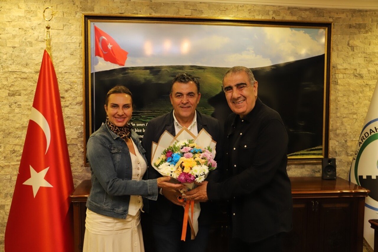 Başkanlık Makamında mini konser birbirinden güzel eserler seslendiren Eda-Metin Özülkü ve Ferihan Atik'e, ses sanatçısı Belediye Başkanı Faruk Demir'de meşhur parçası 'Sarı Saçlım Mavi Gözlüm'le eşlik etti.